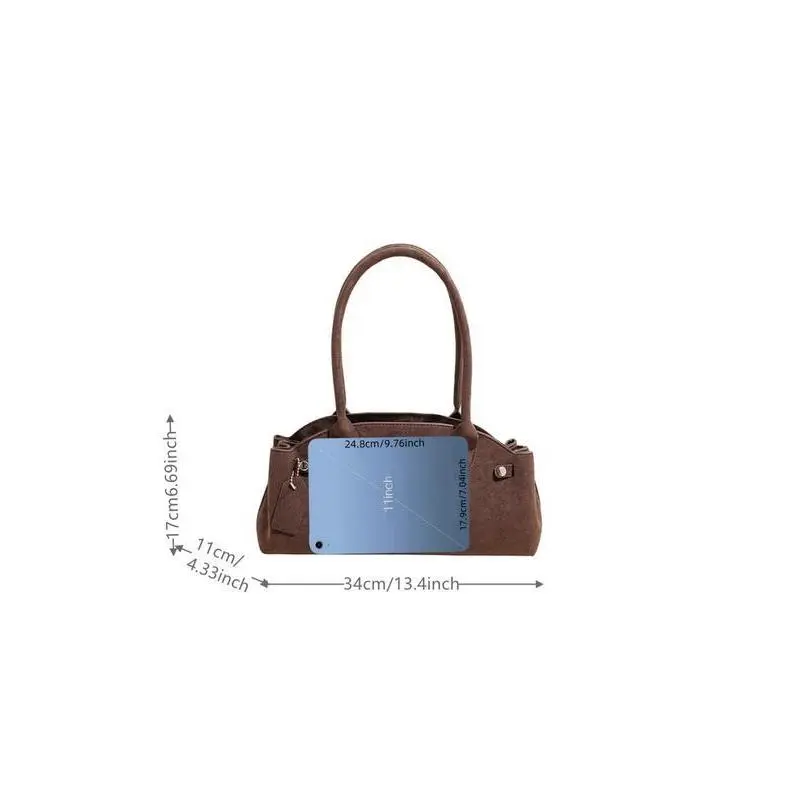 【Chic Appearance】: This bag showcases a sophisticated look, elevating your outfit with its unique vintage charm and modern touches. 【Functional Structure】: Equipped with spacious compartments, this shoulder bag provides ample storage for your daily essentials for easy access. 【Quality Fabric】: Made from high-quality suede-like material, this bag feels luxurious to the touch and offers durability for everyday use. 【Year-round Use】: Designed for all seasons, this bag seamlessly adapts to different outfits, providing consistent style throughout the year. 【Shoulder Convenience】: The practical shoulder strap allows for easy carrying, making it a suitable choice for daily commutes and outings.