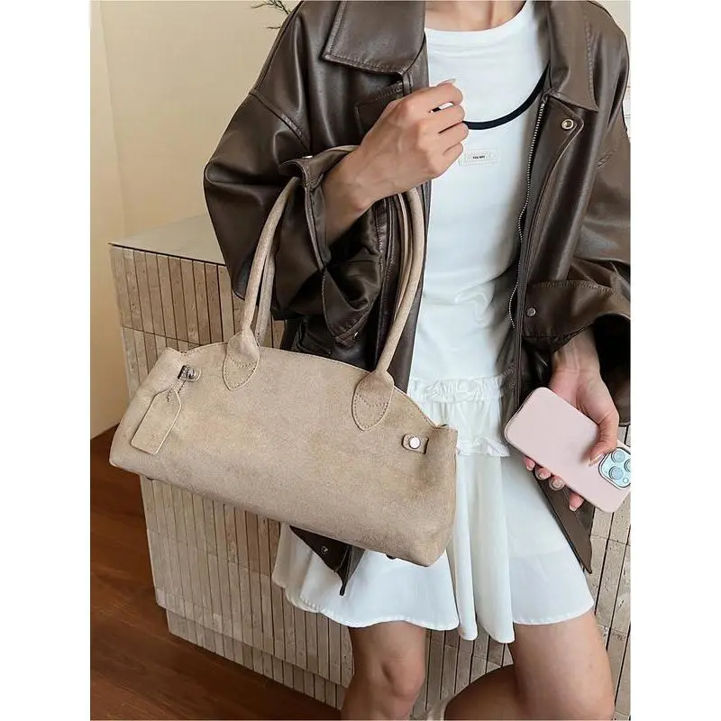 High end, fashionable, multifunctional shoulder bag, retro commuting suede armpit bag, elegant commuting bag