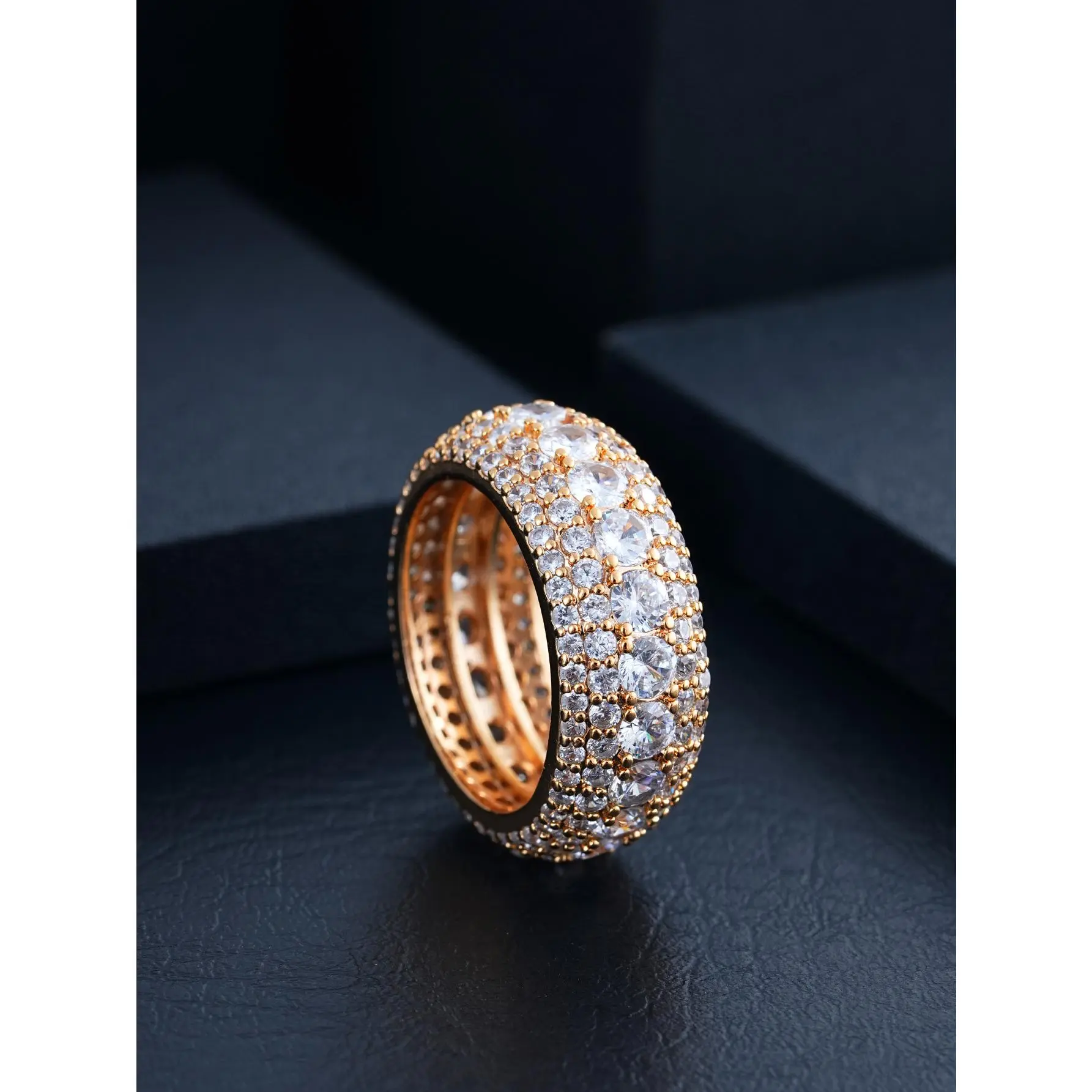 Men's Titanium Wedding Band Engagement Ring 9 Large Cubic-Zirconia Goldtone