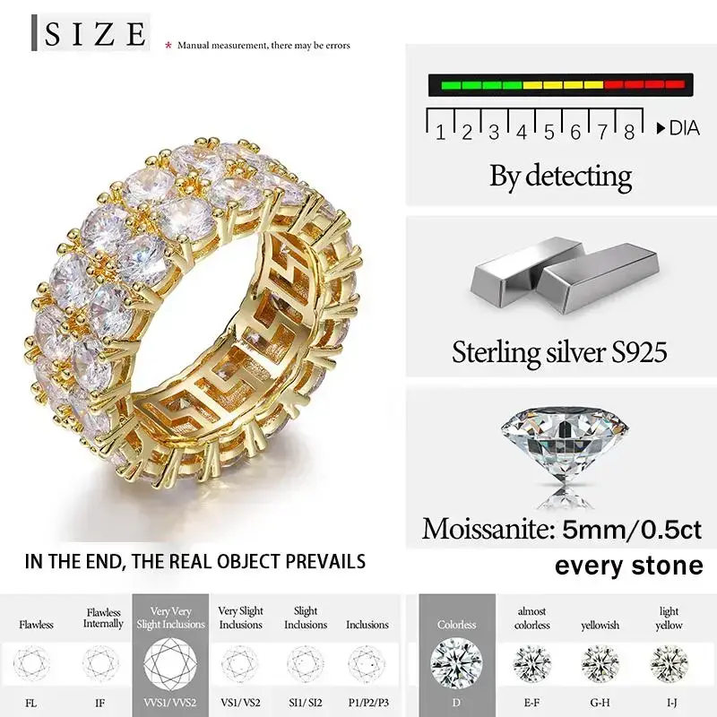 Fine Jewelry VVS1 With Certificate Moissanite Rings For Men Hip Hop Pave Setting S925 Sterling Silver Rings Hip Hop Jewelry