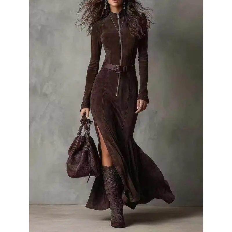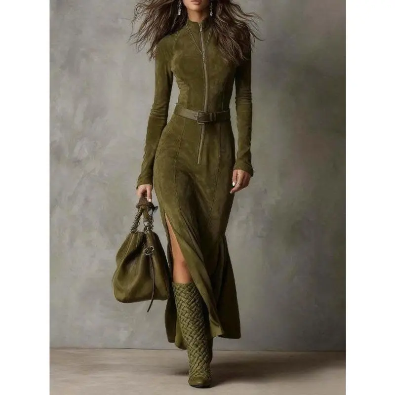 Women's Elegant A-Line Dress ? Elevate your style with this Women's Elegant A-Line Dress. It features a Chinese Cheongsam collar and a full-length zipper, perfect for weddings, parties, and professional wear. The mid-thigh to length design offers a sophisticated look. Crafted from solid color fleece, this dress is hand washable and requires no dry cleaning. Ideal for autumn/winter occasions. ?? Key Features Versatility This dress is versatile, suitable for various occasions. Whether for weddings, parties, or professional wear, it offers a chic and elegant look. The mid-thigh to length design makes it a versatile addition to your wardrobe. Perfect for autumn and winter. ??