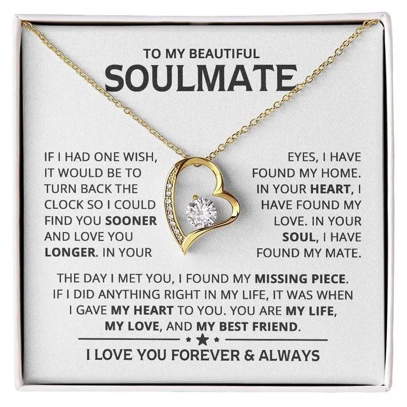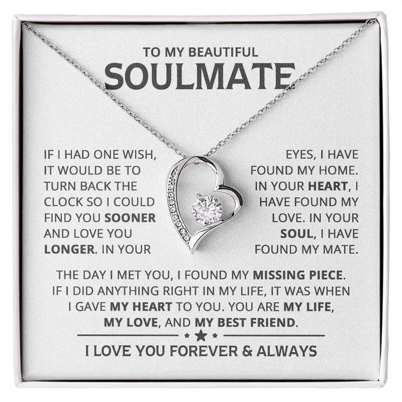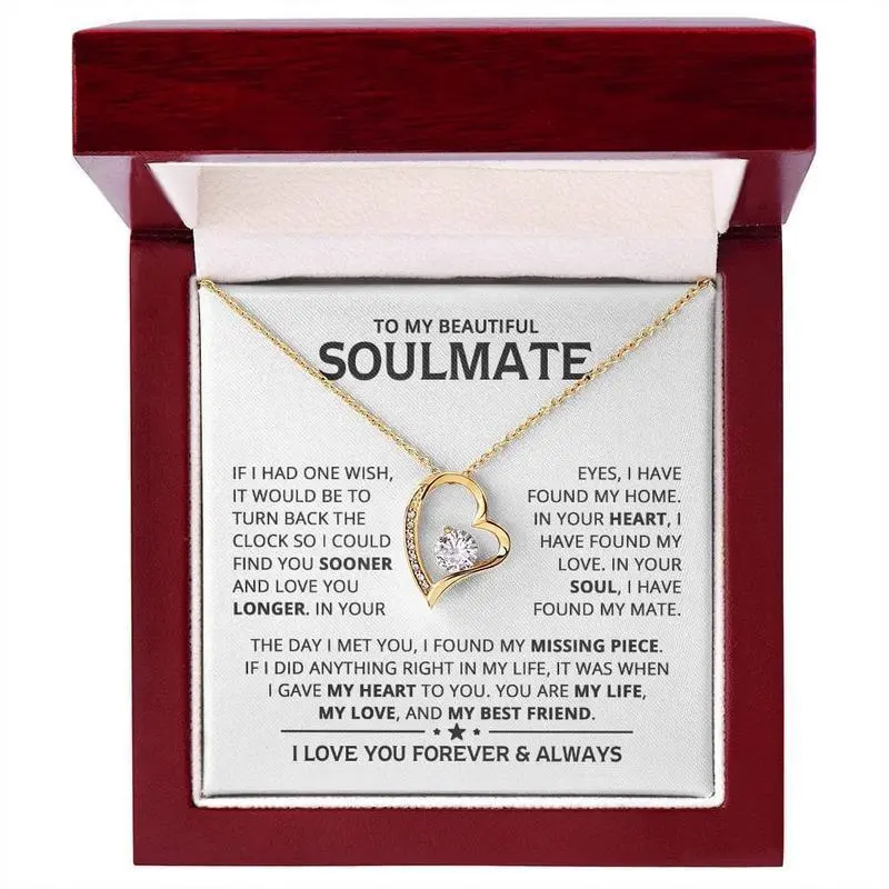 To My Beautiful Soulmate Heart Necklace Gift With Box Couples Gifts Necklace To My Soulmate Necklace Birthday Christmas Jewelry Romantic Gifts For My Wife with Message Card Box Personalized Gift Present Pendant for Future Wife Soulmate Girlfriend