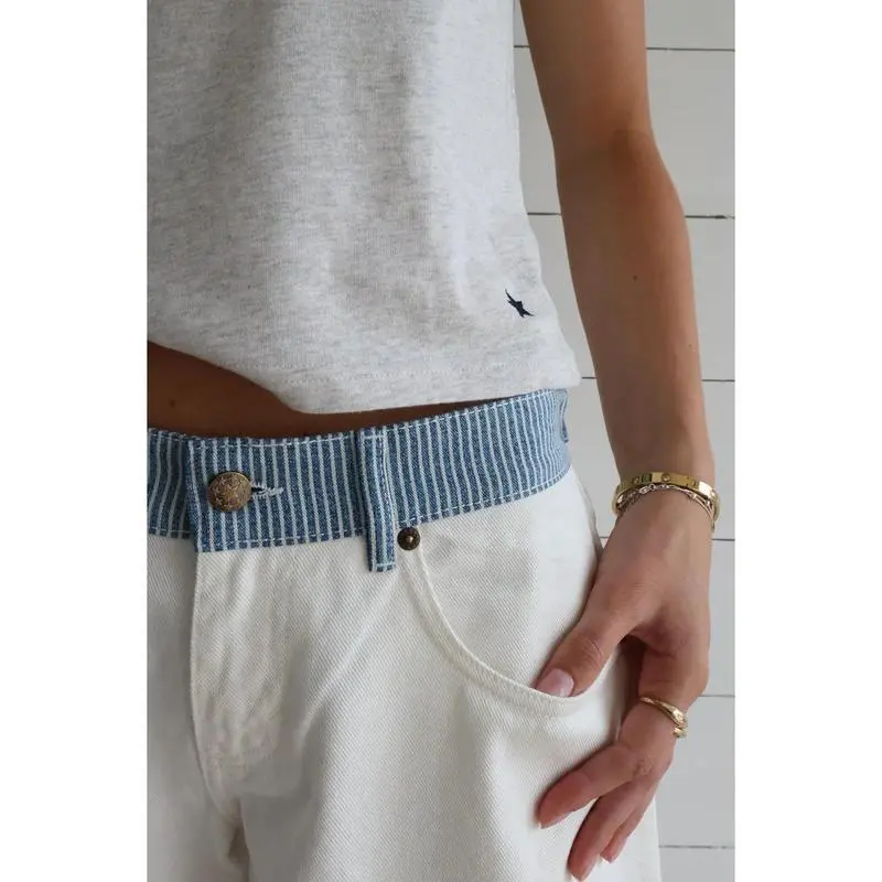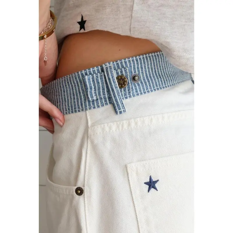 Jodie Jeans: White and Blue Solid Color ✨ Elevate your casual style with the Jodie Jeans. These white and blue solid color retro color block waistband jeans offer a unique blend of comfort and fashion. Perfect for women seeking a loose, straight leg fit, these jeans are ideal for everyday wear. 🌟 Perfect for You These jeans are a versatile addition to your wardrobe. They combine comfort with a stylish retro look, making them a great choice for women who love casual, yet fashionable outfits. 🌟