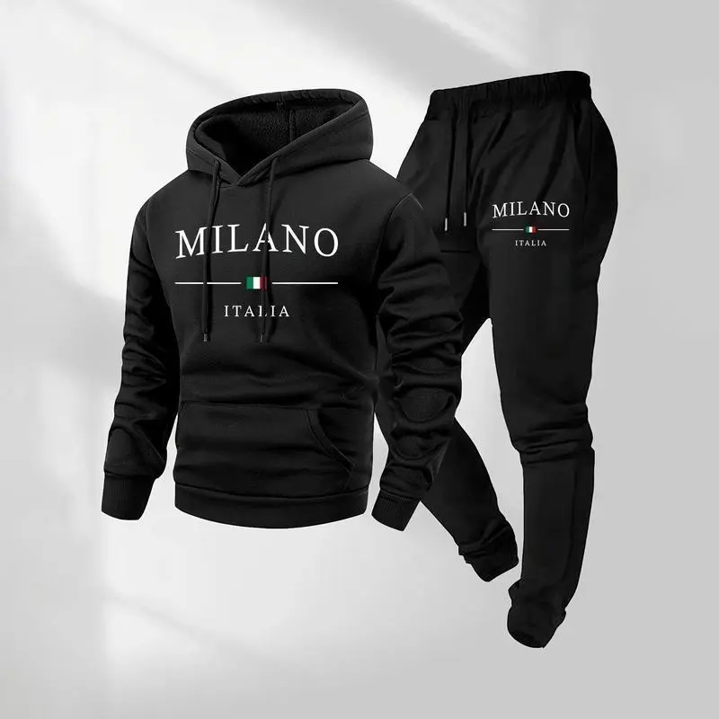 Men's Paris and Milano Letter Print Hoodie and Drawstring Sweatpants Set ? Elevate your casual style with this Men's Paris and Milano Letter Print Hoodie and Drawstring Sweatpants Set. Perfect for fall, winter, and spring, this 2-piece tracksuit offers a loose fit and long sleeves. Ideal for daily, indoor, and outdoor activities, it's a versatile athletic men's sportswear set. ????♂? Product Details Packaging and Applications