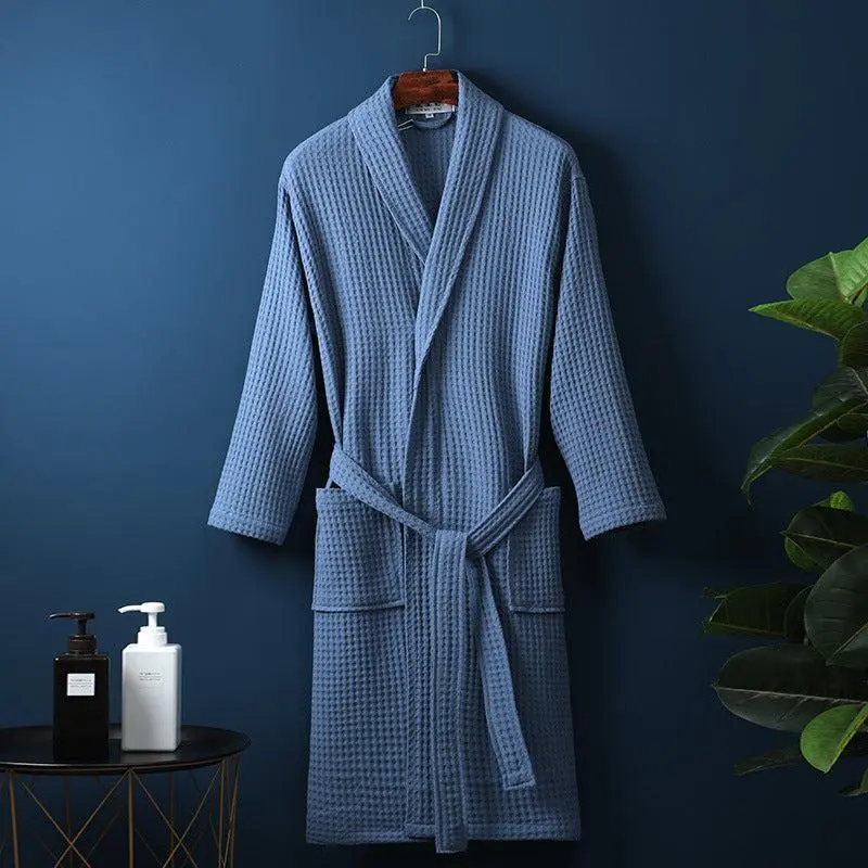 Pure Cotton Bathrobe Long Waffle All Cotton Nightgown