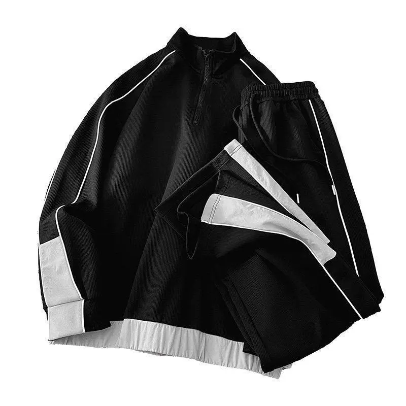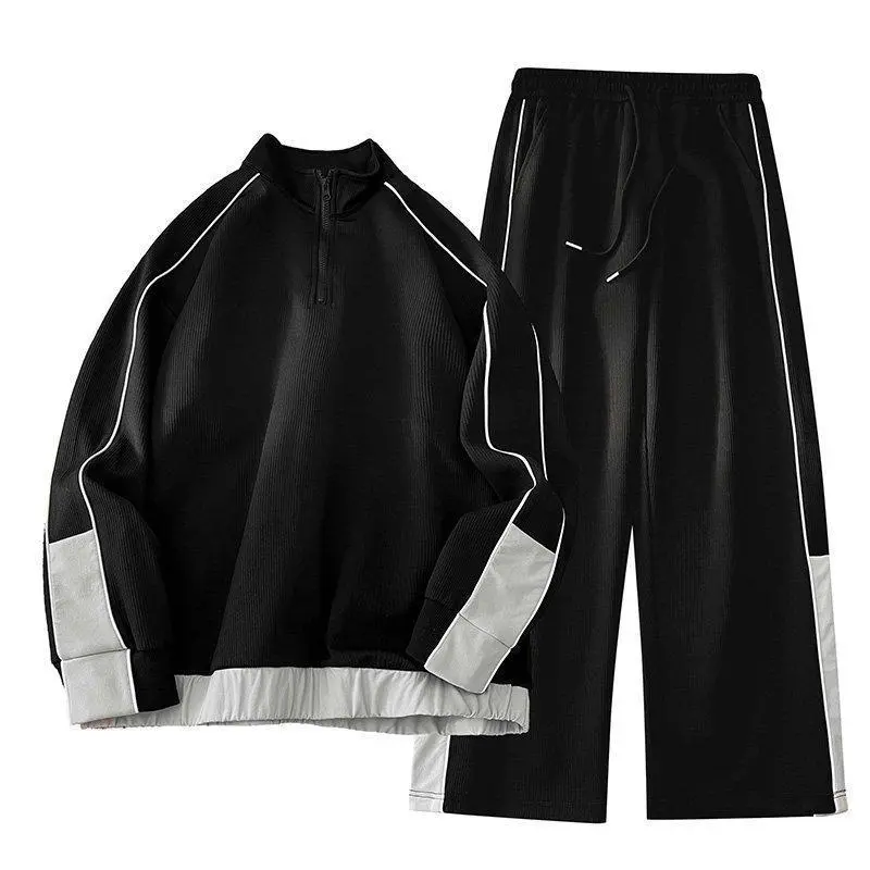 Korean-style retro collar pullover hoodie set for men, autumnal, laid-back, American-style, two-piece outfit
