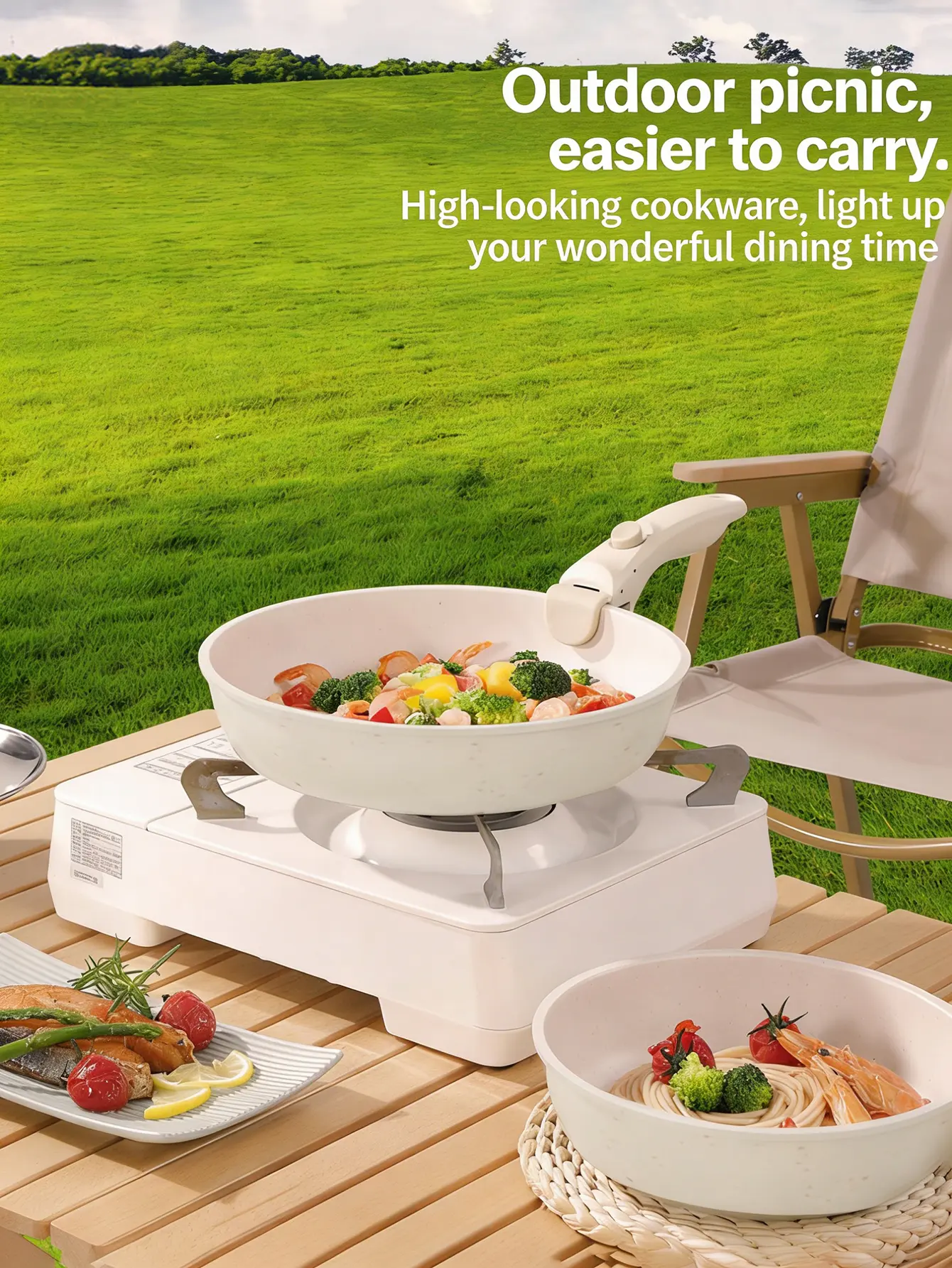 ·Compact and Practical: With its compact design, this set is perfect for small kitchens or outdoor cooking. The white non-stick ceramic material adds a sleek look to your cooking setup.