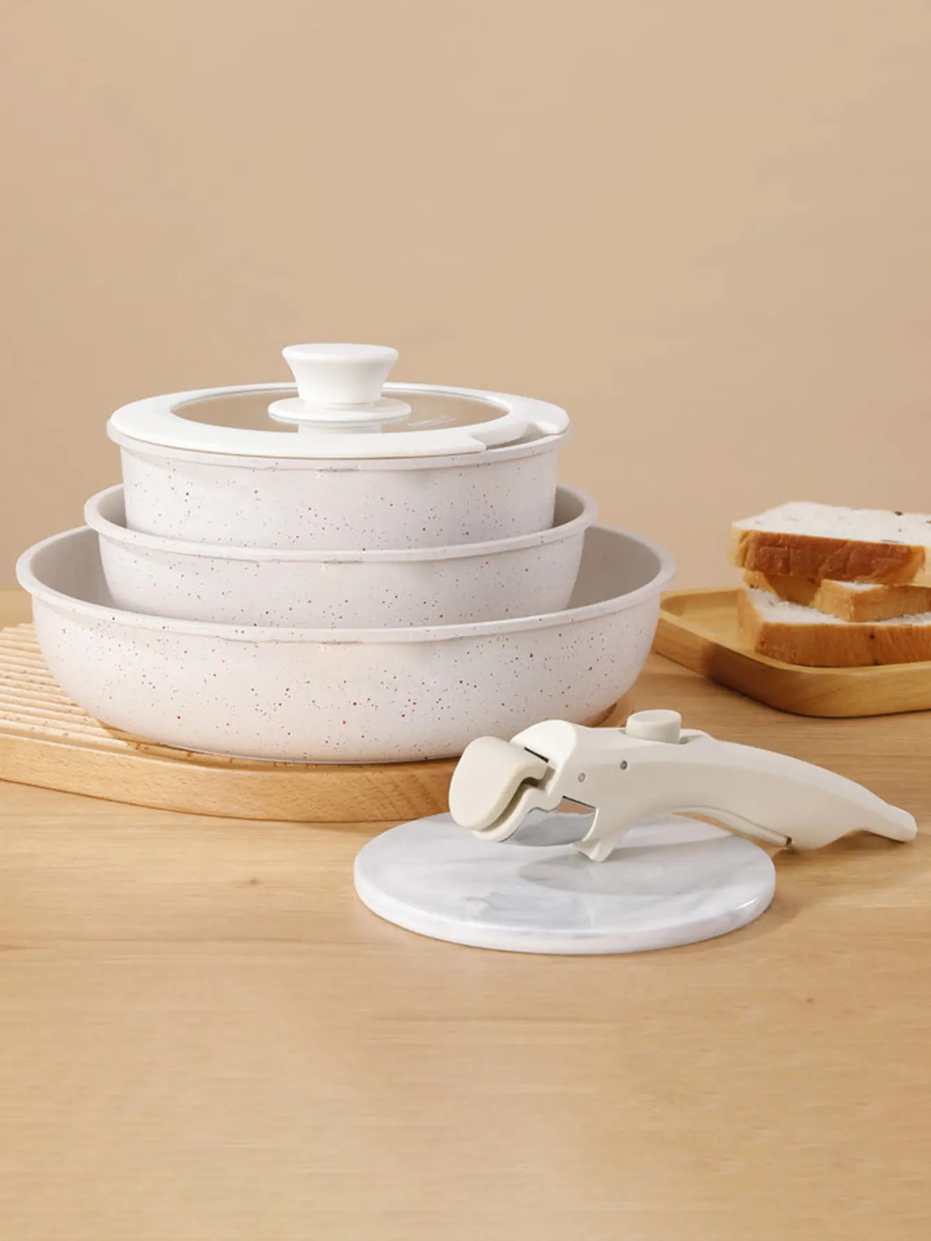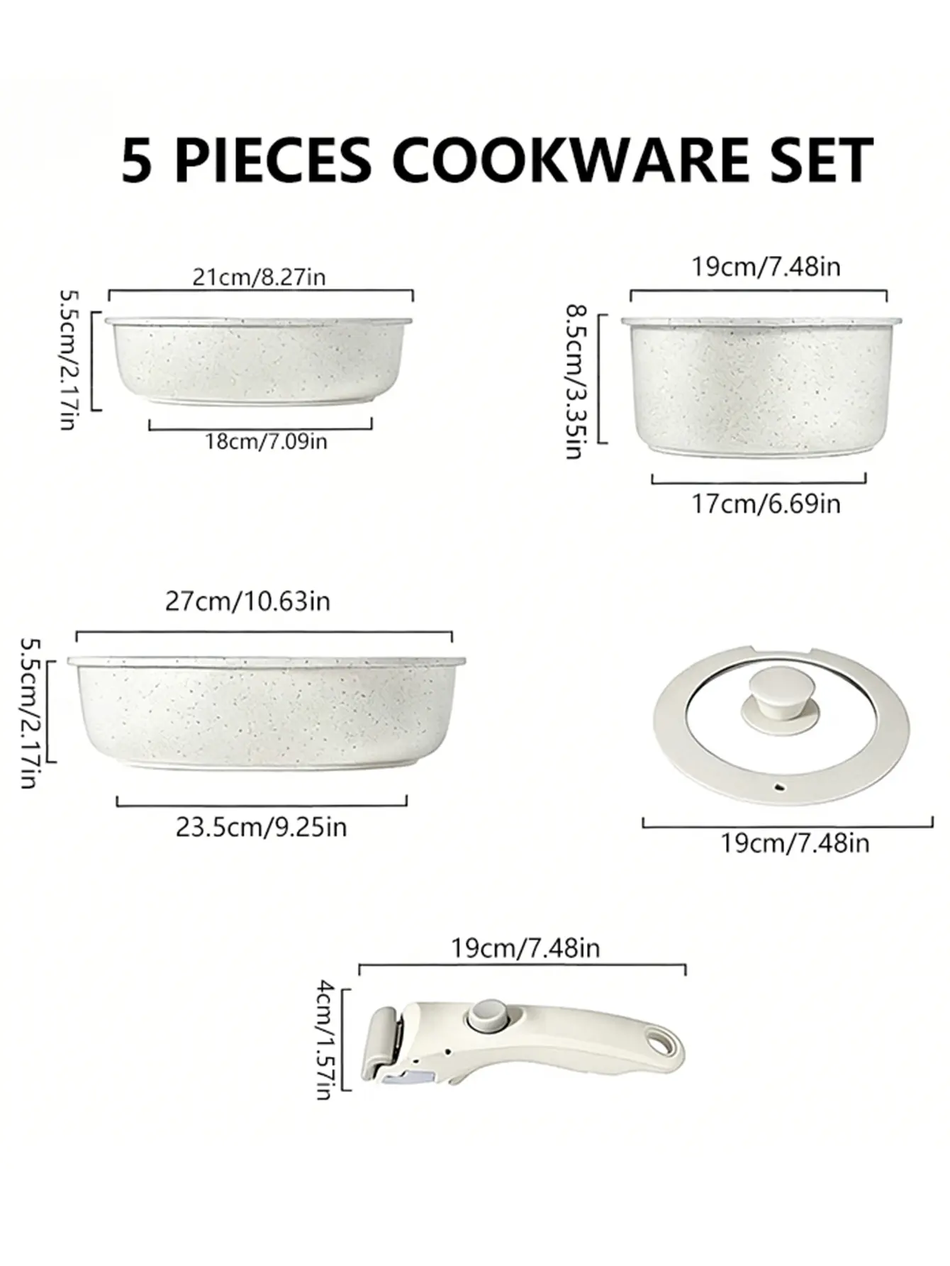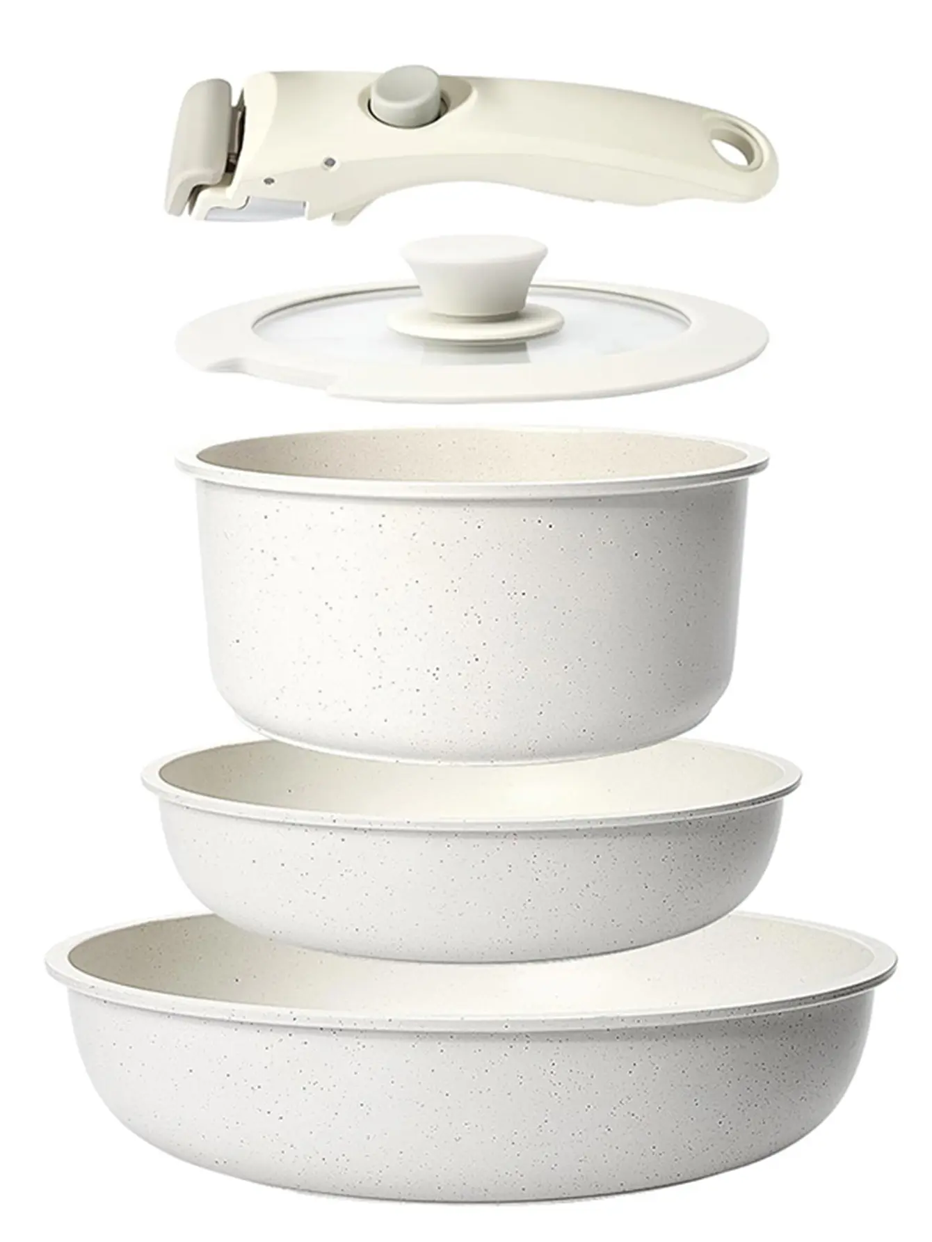 5-piece White non-stick ceramic cooking set, set of pots and pans, with detachable handles, ideal for daily cooking, RV camping and compact kitchens Cookware