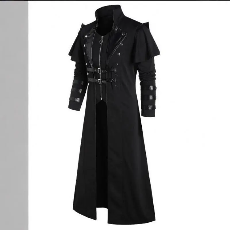 Medieval Renaissance punk jacket, stage play performance props, photography suit, retro long slit jacket Menswear Clothes Aesthetics Coat