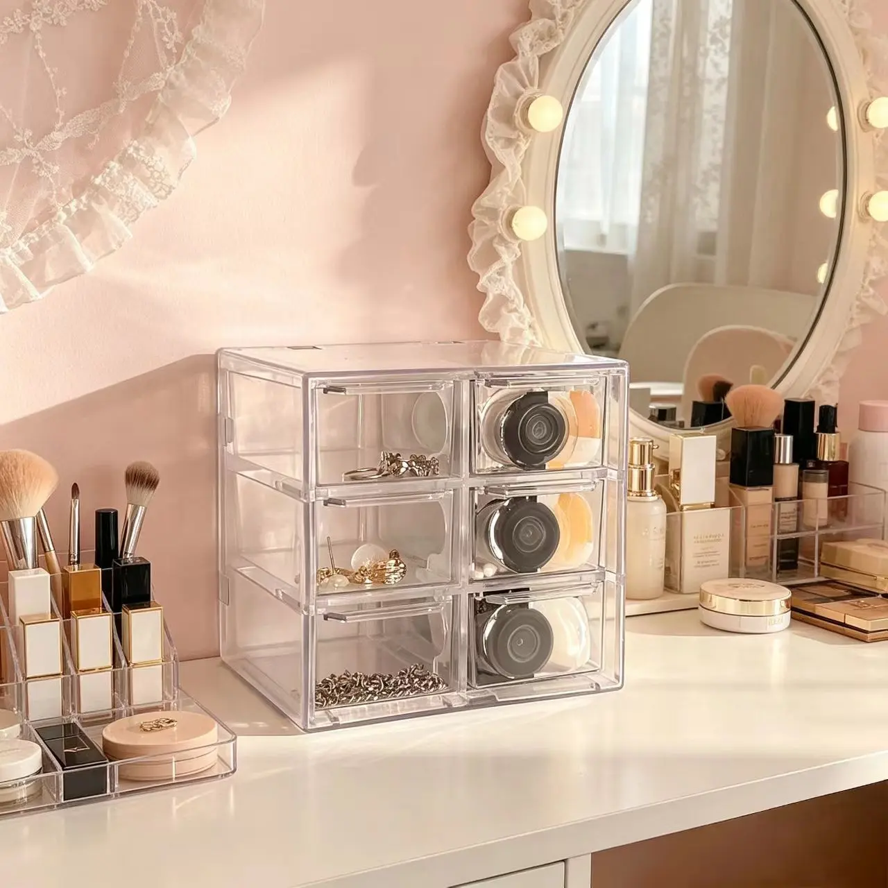 Large Capacity Desktop Organizer Box, Drawer Design, Ideal for Home Office, Living Room, Bedroom, Multi-Functional Storage for Jewelry, Stationery, Small Items