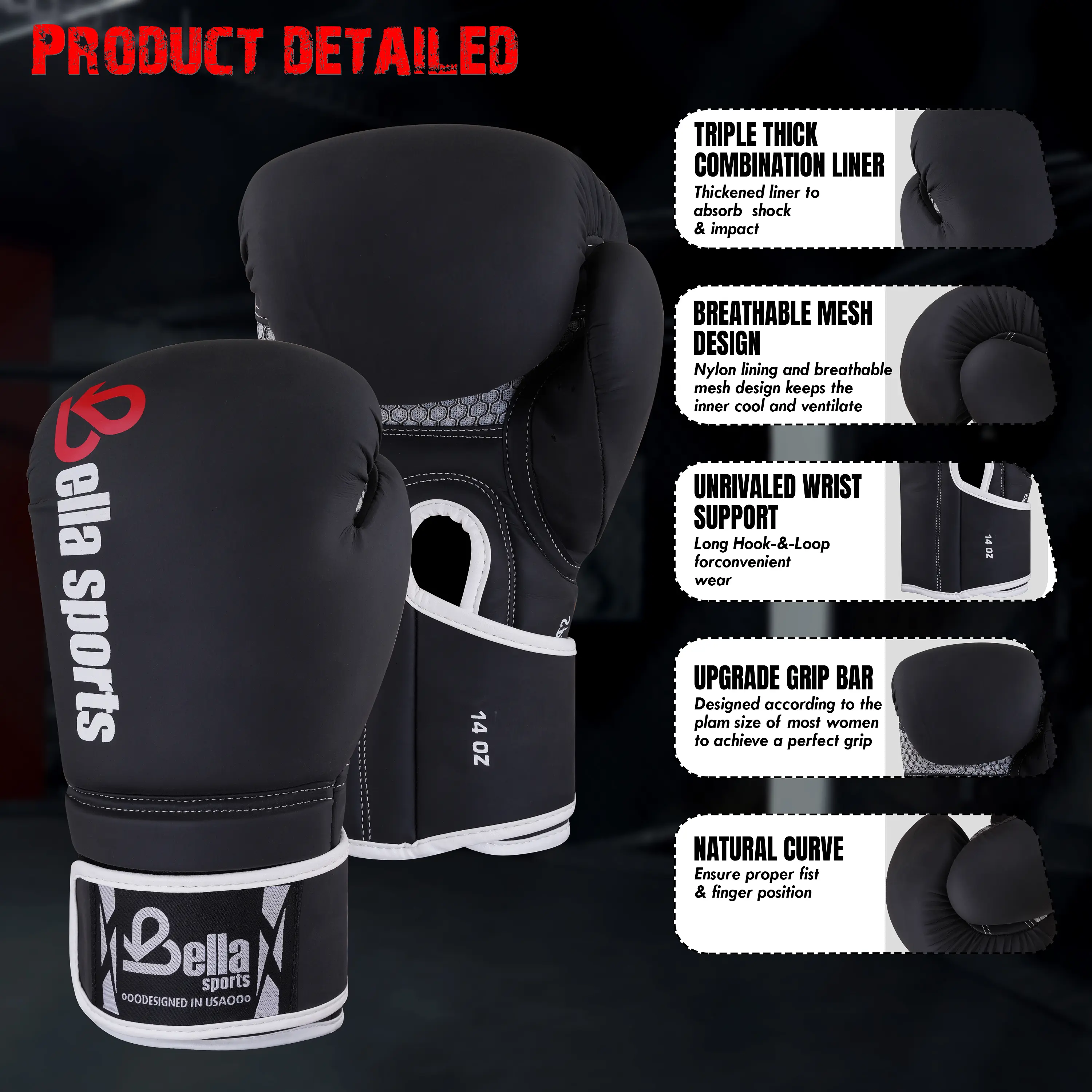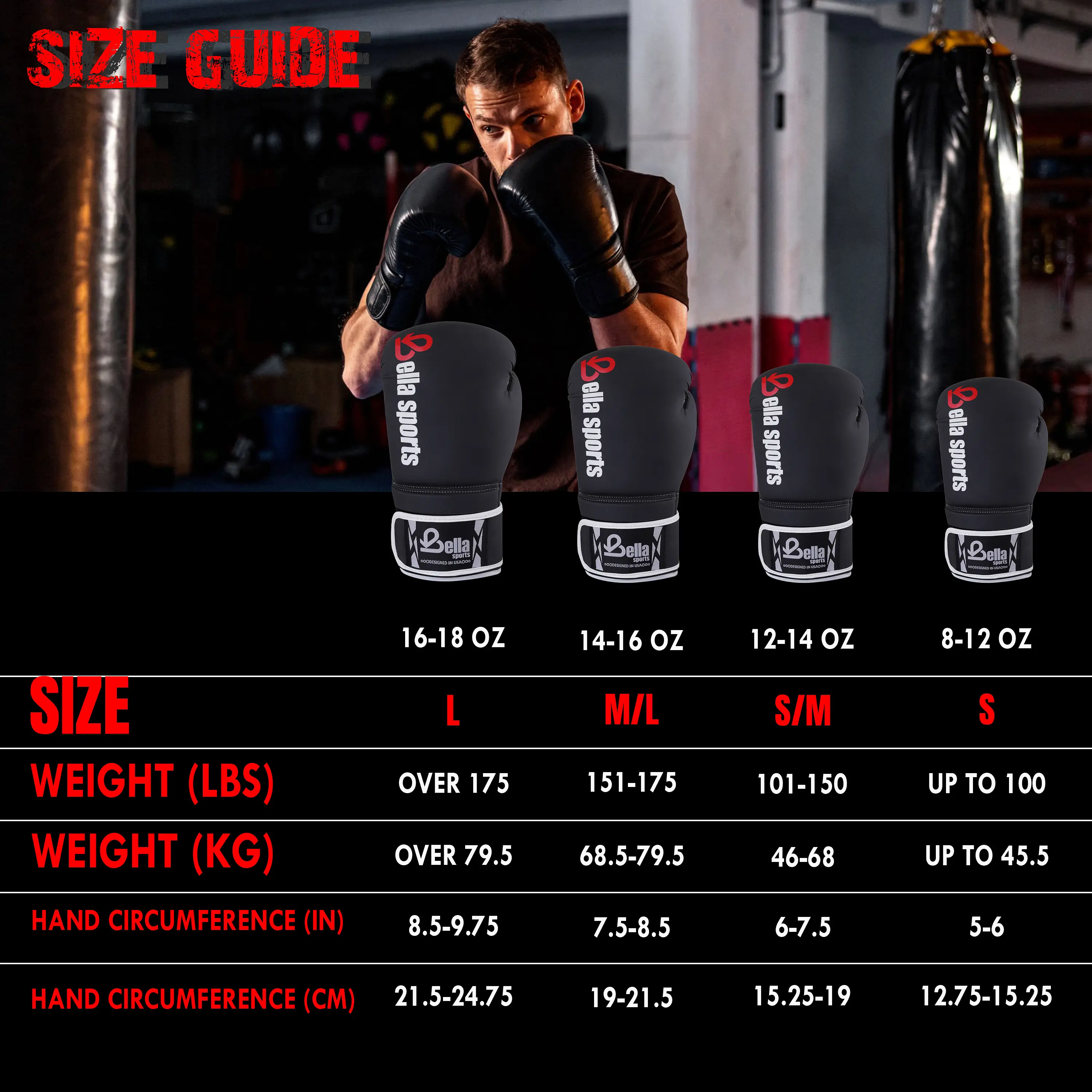 BELLA Sports Boxing Gloves  Training Gloves Synthetic Leather Punching Bag Gloves for Men Women Kickboxing MMA Muay Thai Sparring Gloves Heavy Bag Workout Fighting Gloves with Wrist Support