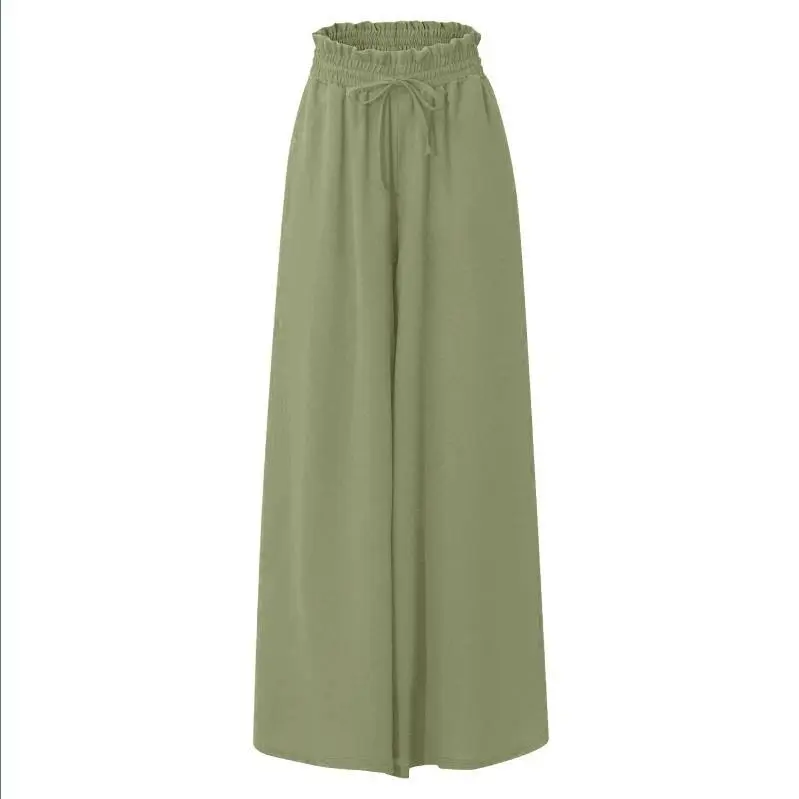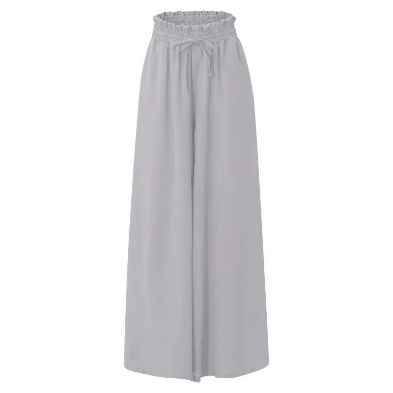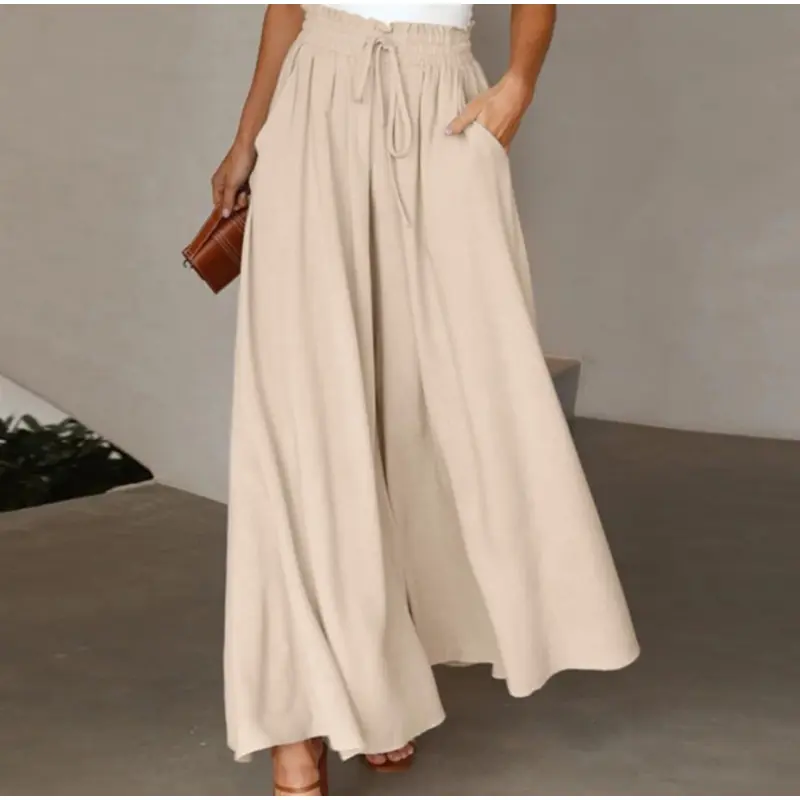 Women's new summer wide-leg long pants with elastic waistband, high-waisted long skirt-pants for women, suitable for beach vacations and commuting