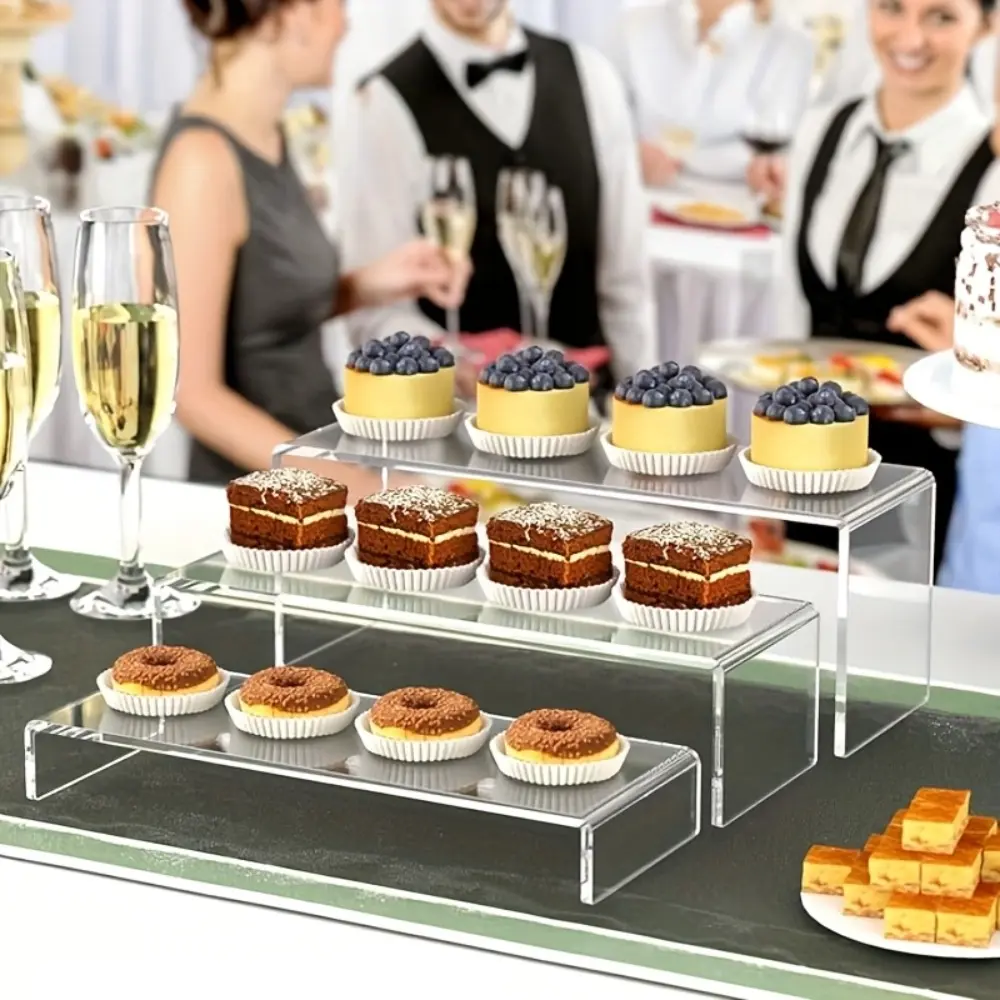 Rectangular transparent acrylic display stand, transparent multi-layer rack, suitable for weddings, business gatherings, tea breaks - cup cakes, sushi, a stylish and practical transparent plastic pastry rack (3/6/9 Pack)