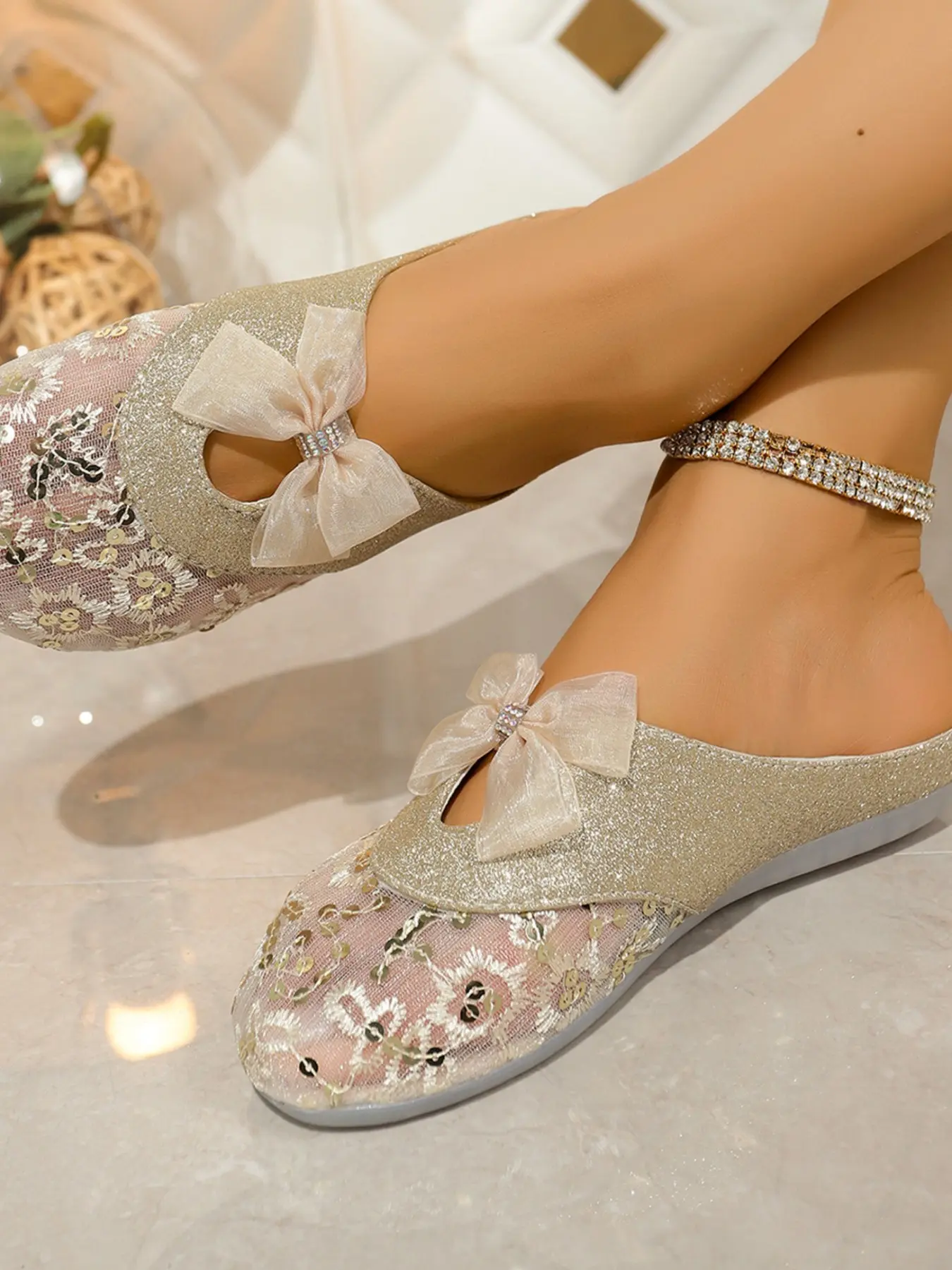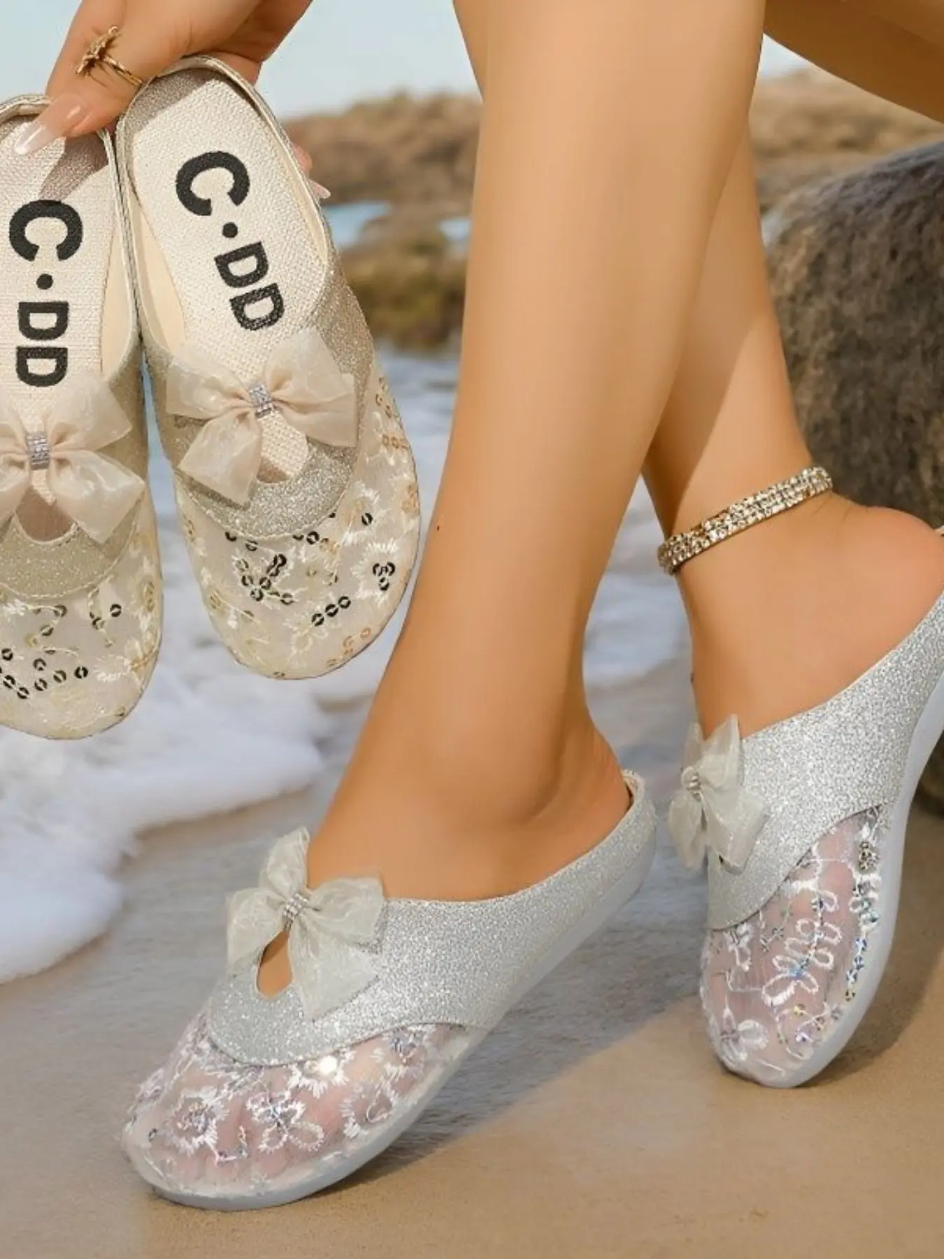 French Style Lace Half Sandals, Breathable Slip-On Comfort Shoes, Ideal for Commute, Home, Dates, Lazy Days, Women's Summer Footwear