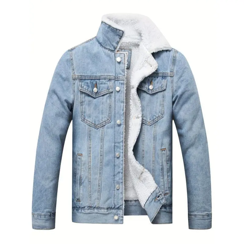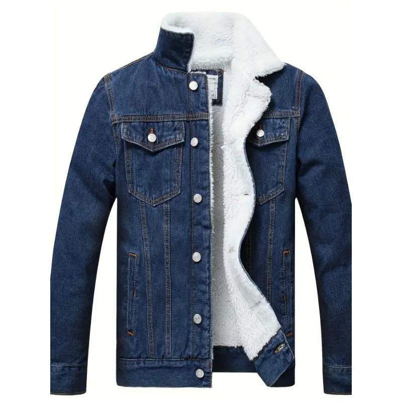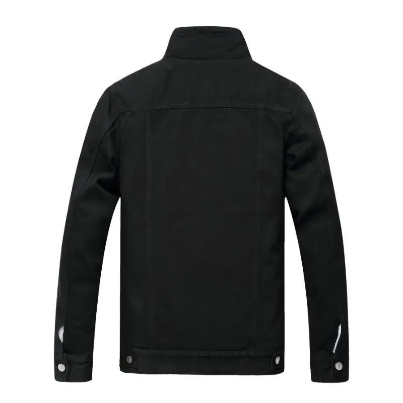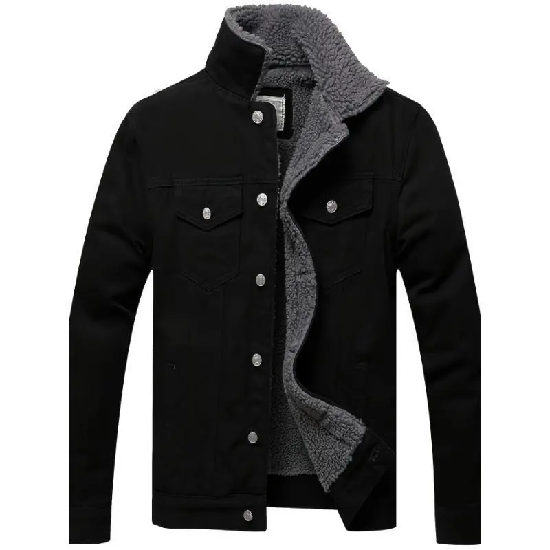Men's Vintage-Inspired Black Denim Jacket with Cozy Fleece Lining, Classic Design, Lapel Collar, Chest Pockets, Warm, Durable & Easy Care