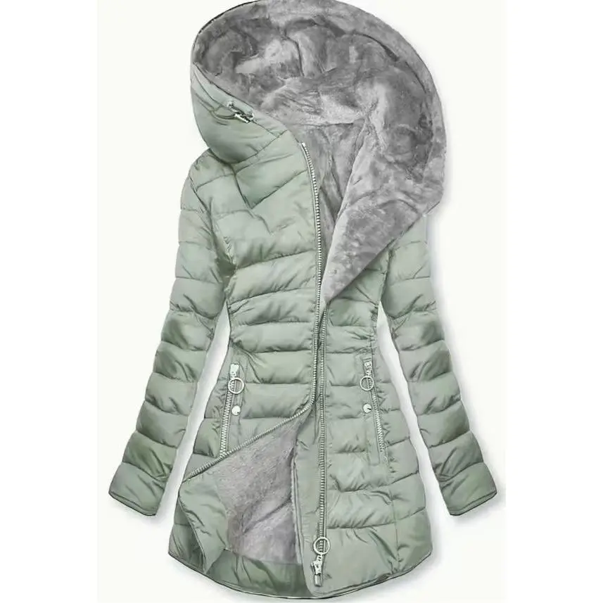 Zippered Hooded Down Jacket, Casual Long Sleeve Pocket Faux Lined Warm Winter Jacket, Women's