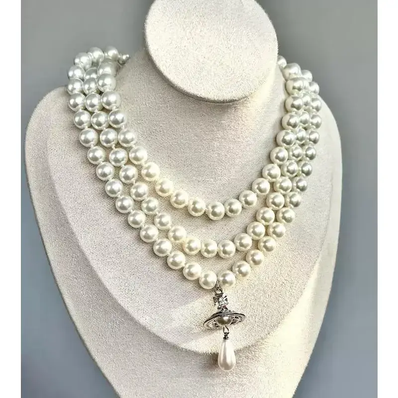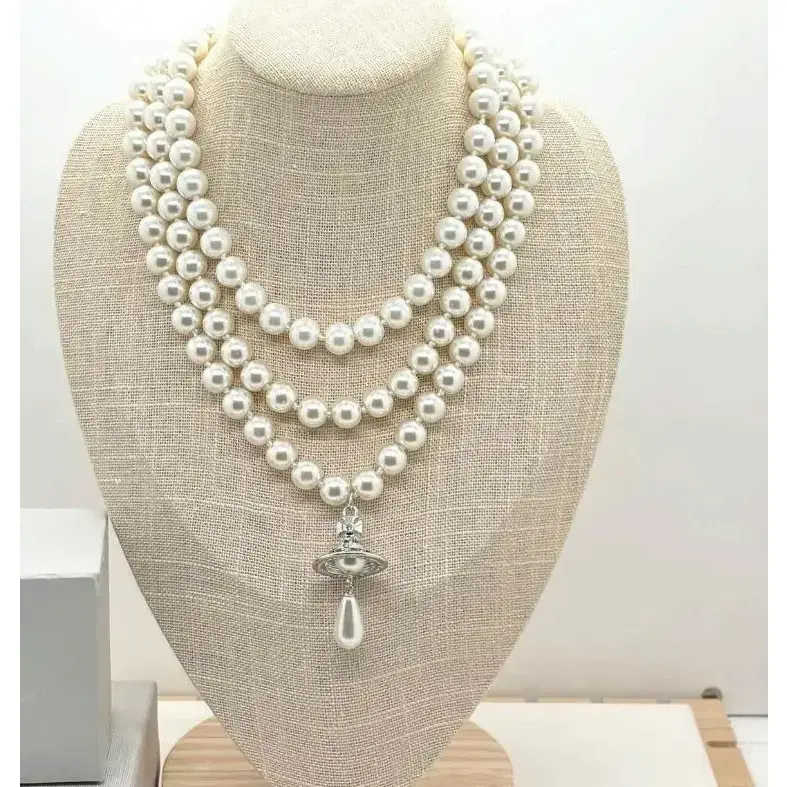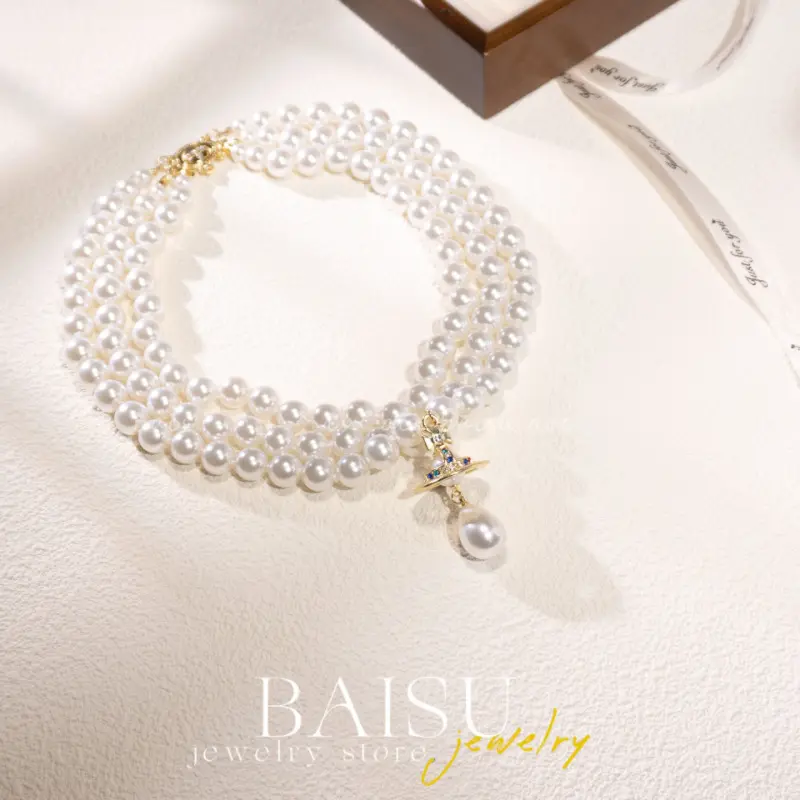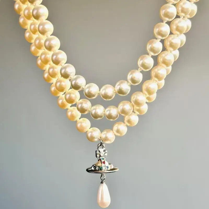 ?? Y2K Style Queen Mother West Mini Three-layer Pearl Little Saturn Pearl LovePin 3D Planet Necklace & Bracelet Specifications: