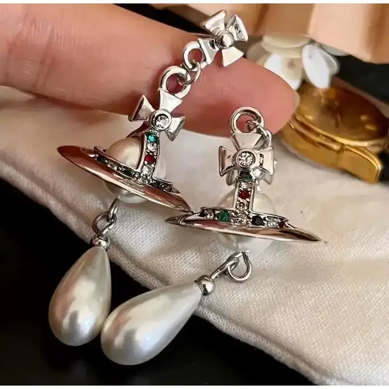 Y2K Style Queen Mother West Mini Three-layer Pearl Little Saturn Pearl LovePin 3D Planet Necklace & Bracelet Premium Titanium Alloy Ideal for Daily Wear & Parties Daily Wear Jewelry Y2KFashion Accessory Durable Alloy
