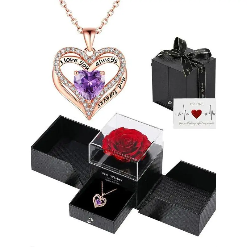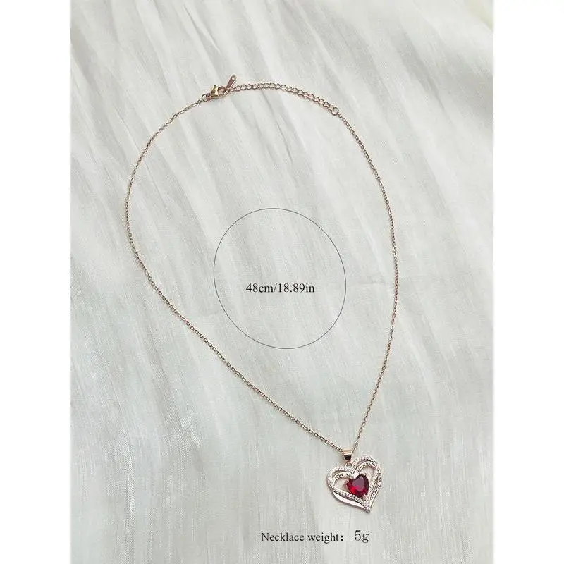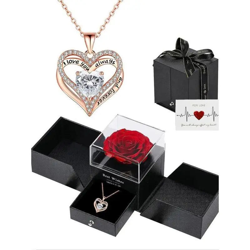 Luxury Rhinestone Decor Heart Necklace with Red Rose Flower Gift Box, Matching Vintage Jewelry for Birthday, Anniversary, Perfect Gift for Girlfriend, Valentine's Day, Gift, Mother's Day Gifts, Gift Set for Mothers, Gifts for Her