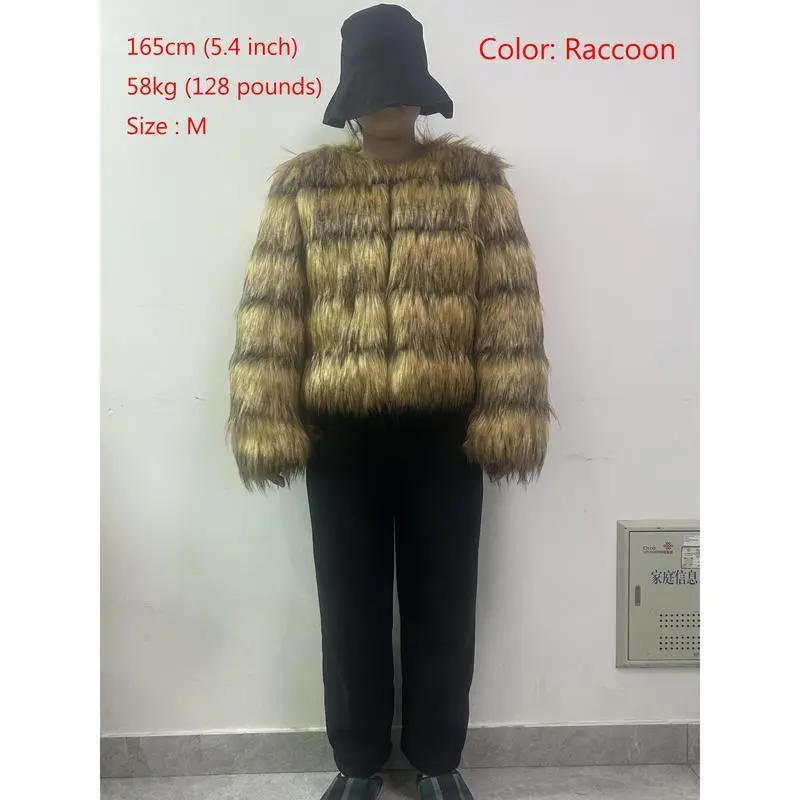 Artificial Raccoon Fur Coat Women's Jacket Luxurious Coat Women's Winter Fluffy Jacket Thick Warm Furry Coat Artificial Fur Coat