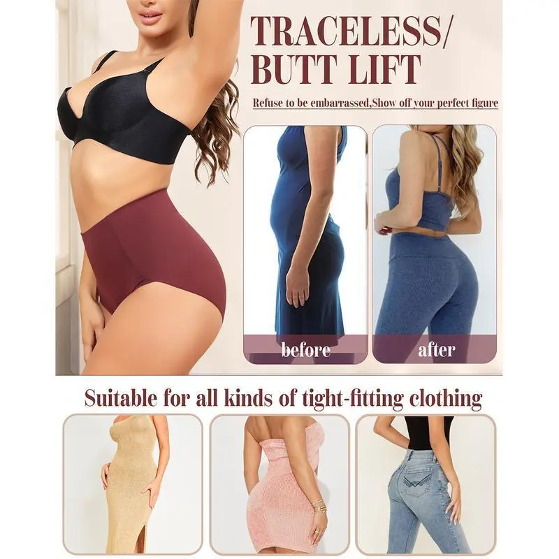 Seamless High Waisted Underwear for Women – 4 Pack No Show Light Tummy Control Briefs, Invisible Shapewear Panties (S-XXL)