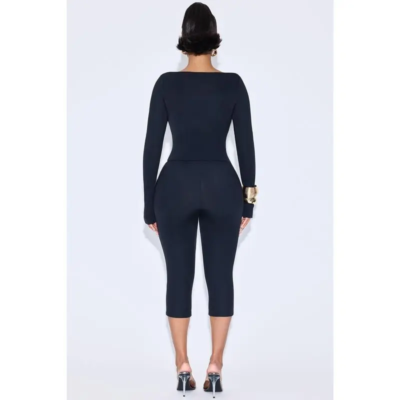 Darcie Double Lined Capri Pant Set - Black