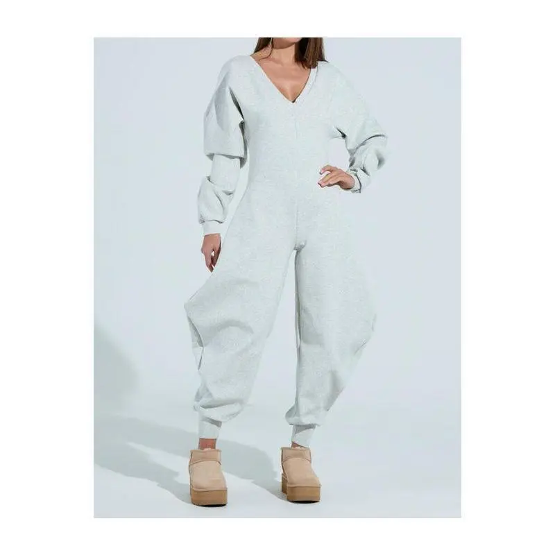 [Sweatshirt Fabric Comfort]: Crafted from soft, fleece-lined or thick cotton sweatshirt material, the jumpsuit wraps you in coziness-perfect for cool days, feeling like a warm hug while staying lightweight. [Relaxed Loose Fit]: Features a roomy, casual silhouette that allows full freedom of movement-no tightness around the waist or legs, ideal for lounging at home, running errands, or casual outings. [Functional Details]: Designed with practical touches like a drawstring waist (to adjust fit) and side pockets (for phones/keys), blending comfort with everyday utility. [Versatile Styling]: Easy to dress up or down-pair with sneakers for a laid-back look, or add ankle boots and a denim jacket for a chic, casual vibe. [All-Season Adaptability]: Works as a standalone piece in spring/fall, or layer with coats in winter; the soft fabric keeps you comfy without overheating. [Care Instructions]: Machine wash cold on gentle cycle; tumble dry low to preserve softness; avoid bleach to keep the fabric in good condition./The above is all the introduction to the product details.