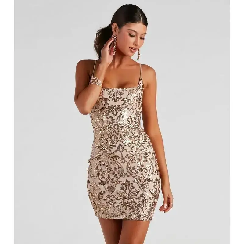 🌞 Summer Sequined Suspender Dress 🌞 ✨ Elevate your summer wardrobe with this sequined suspender dress. Perfect for those hot days, it features a stylish hip wrap design. The mini dress is ideal for a chic, summery look. Pair it with your favorite accessories for a complete ensemble. This dress is a must-have for your summer collection.