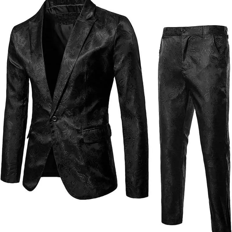 Men's 2 Pieces lightweight Jacquard Blazer Suits 1 Button Party Wedding Tuxedo Jacket Pants Casual Slim Dress Suit Formal business casual outfits Long Sleeve Menswear business casual outfits