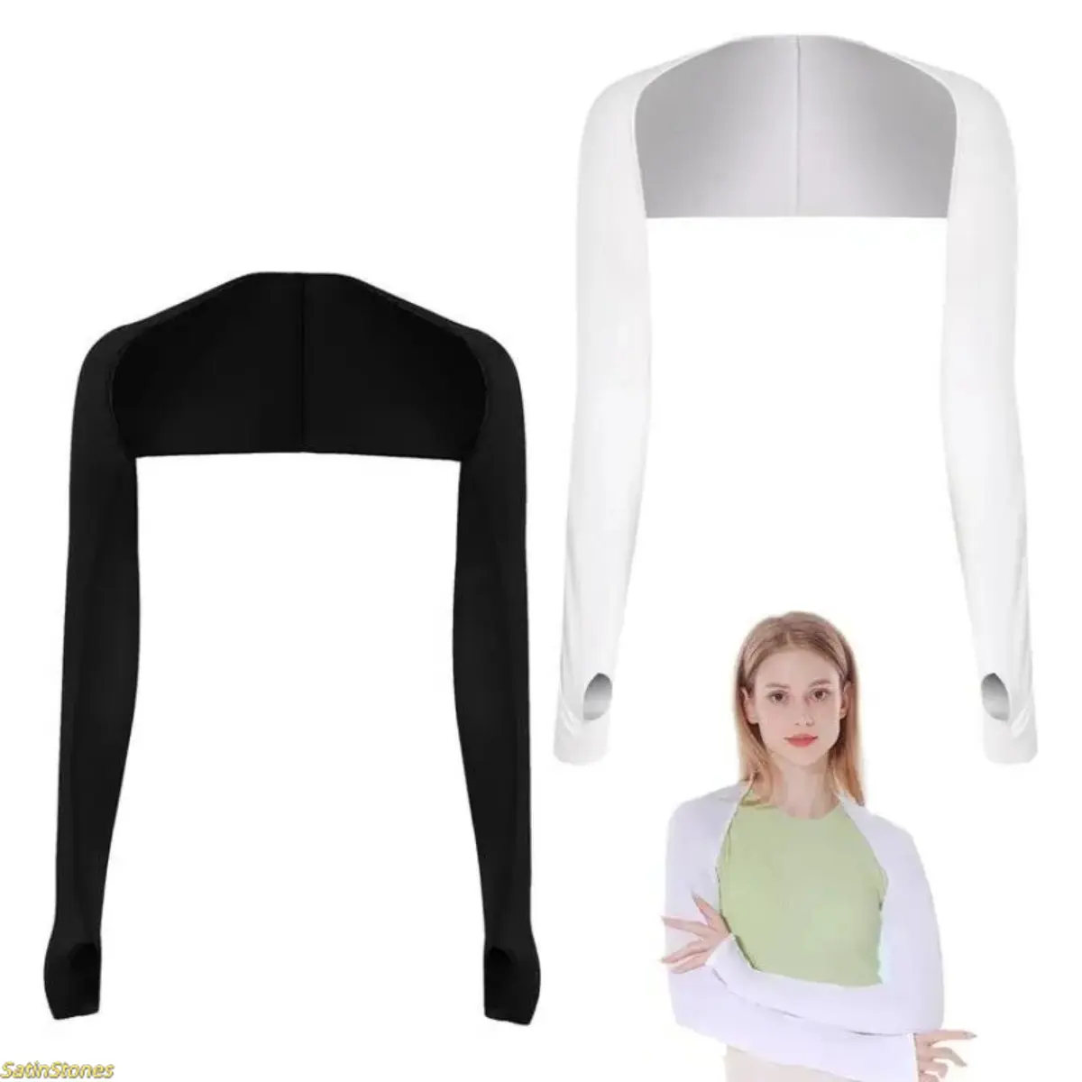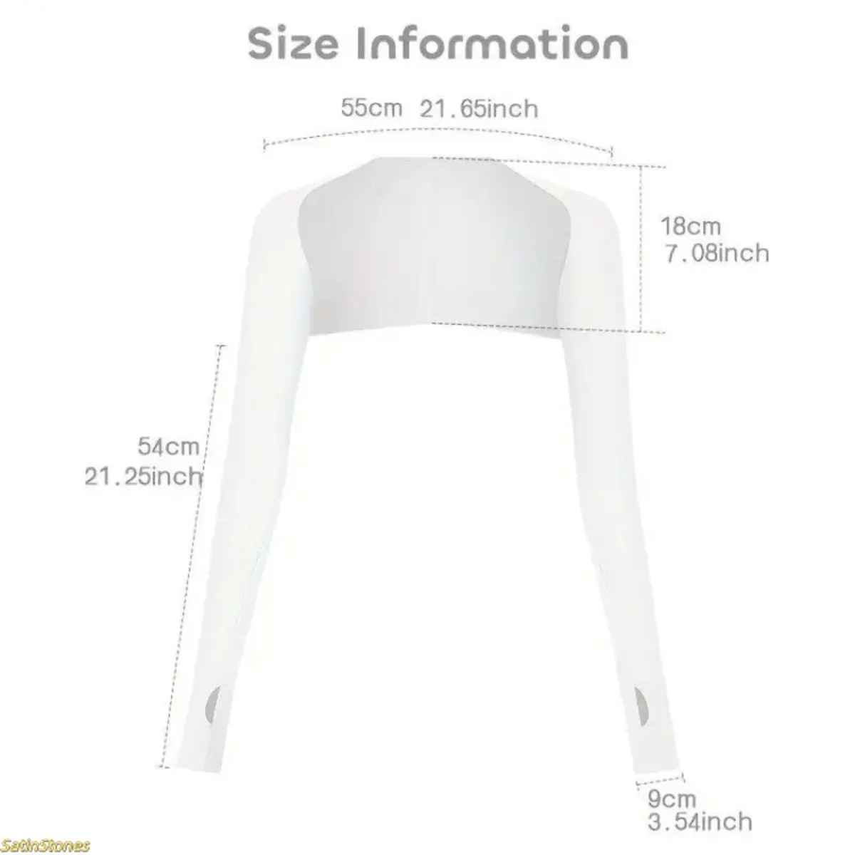 2 Pack Refreshing Shawl Arm Sleeves Package Contents: Get 2 cool shawl cuffs, perfect for summer. Share them with family and friends. These sleeves are ideal for changing during hot days. ️ Practical Design The shawl sleeves feature finger holes on both sides, ensuring easy use. The connection design protects arms, shoulders, and part of the back. It shields your body from strong sunlight effectively. Powerful Function Made of polyester and spandex, these sleeves are breathable, cool, and comfortable. They are elastic, durable, and easy to care for. Machine or hand washable, they provide a soft, comfortable feel. Thin in summer, they prevent stuffiness. ️ Scope of Application Suitable for most outdoor activities like running, cycling, walking, golfing, driving, tennis, fishing, and shopping. Match these sleeves with various clothing styles for versatile protection. Enjoy the outdoors with confidence! Length: 21.6" Width: 19.7"