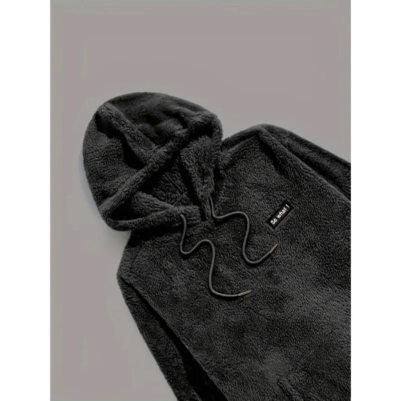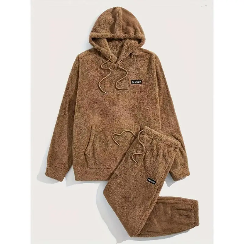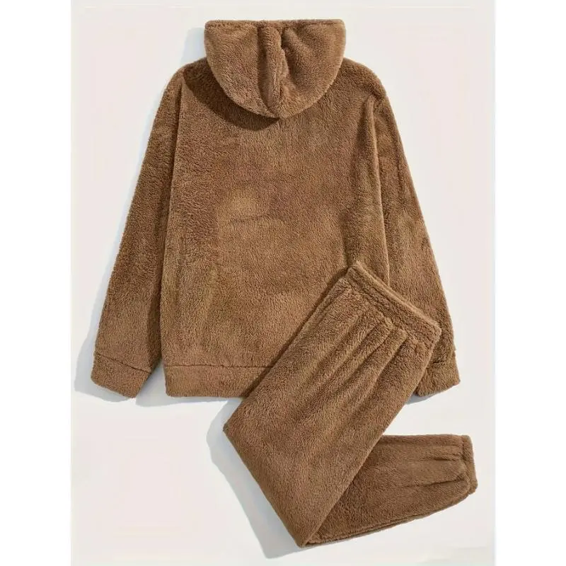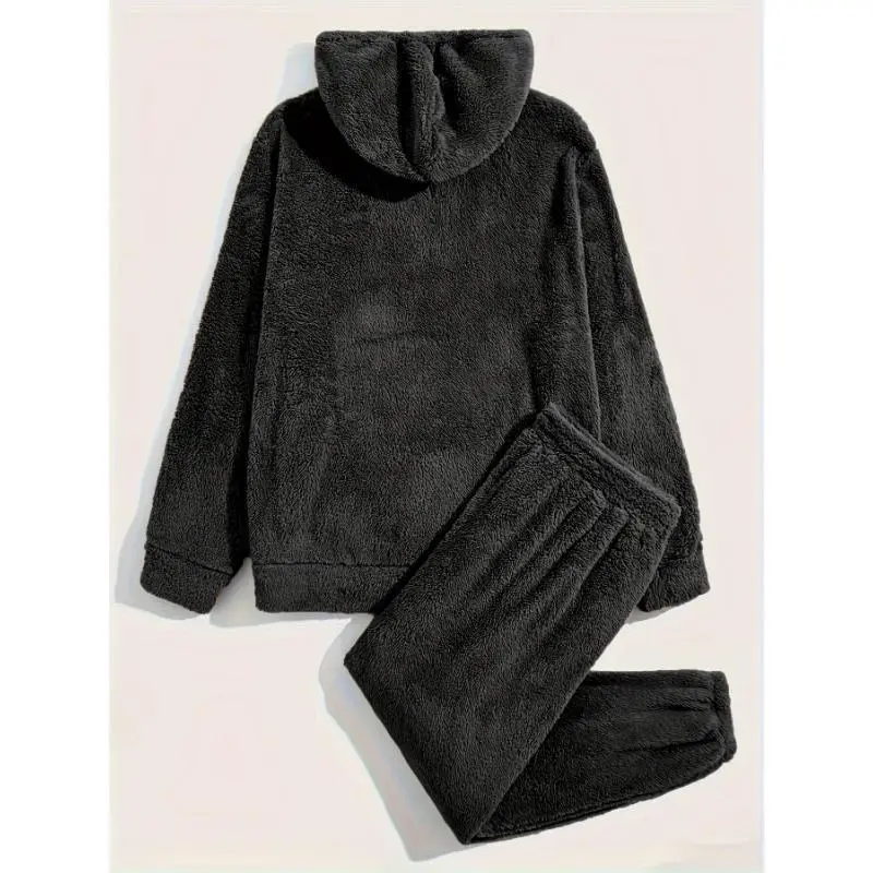 2-Piece Fluffy Men's Outfit Set: Casual Hooded Sweatshirt & Sweatpants Joggers for Winter Fall - Long Sleeve Pullover Hoodie and Soft Fleece Pants