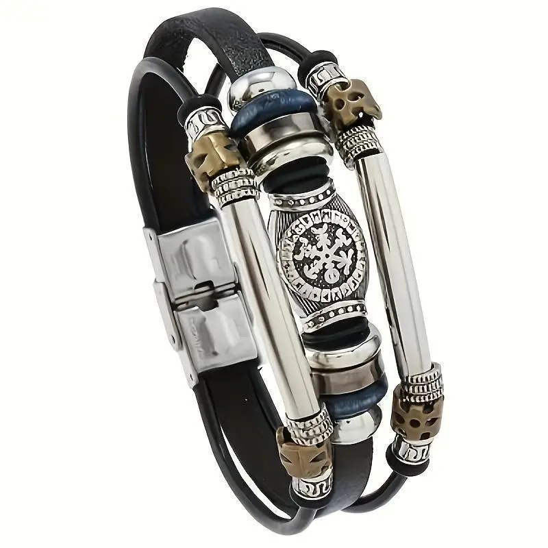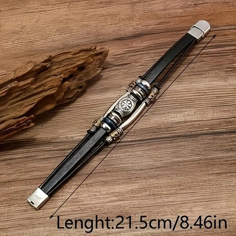 Vintage Viking Style Faux Leather Bracelet ✨ Elevate Your Style with Elegance ✨ This bracelet is a perfect blend of vintage and modern. It features a faux leather material, ideal for those who love a unique look. The black color is versatile and easy to match with any outfit. It's a new creation, perfect for men who seek a creative accessory. Perfect for Any Occasion This bracelet is suitable for casual outings or as a statement piece. Its design makes it a standout accessory. Add it to your collection for a touch of creativity.