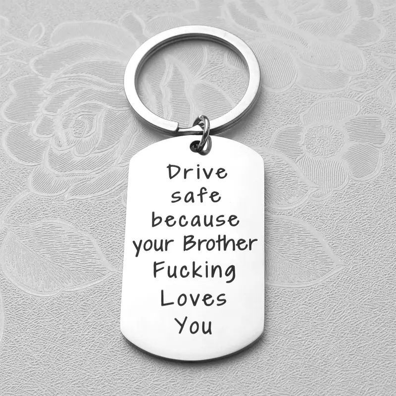 2Pcs Stainless Steel Keychain for Men - "Drive Safe Because Your Sister Loves You" - Durable Keyring Gift for Brother from Sister Safety Harness Leash