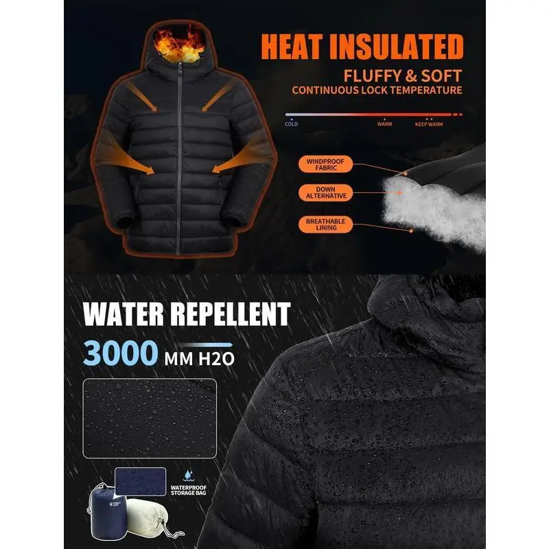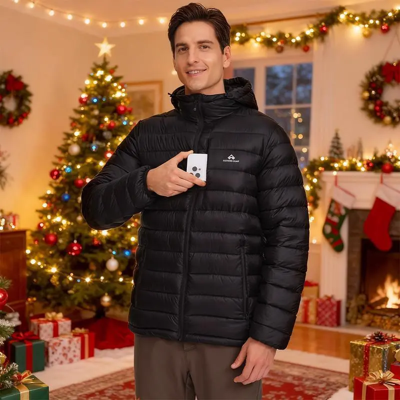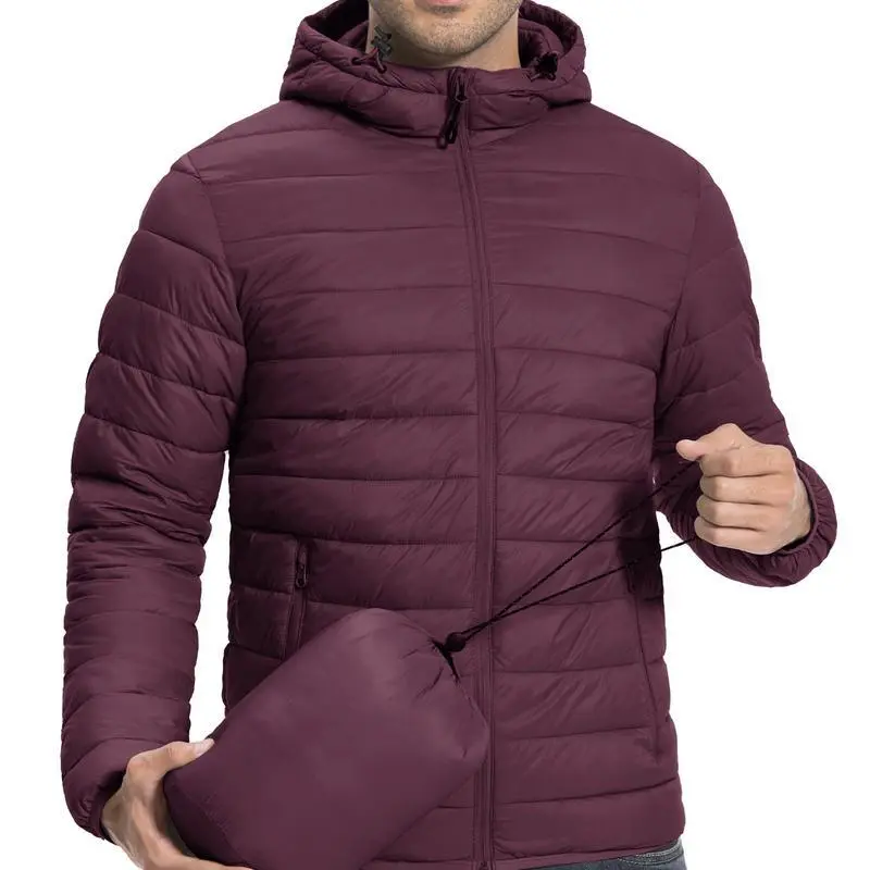 Men's lightweight outdoor inflatable jacket with hood insulation and warmth, winter running jacket, casual option, breathable foam cotton elastic men's outdoor jacket