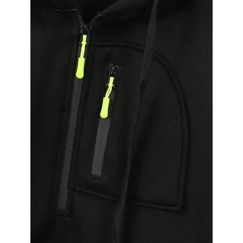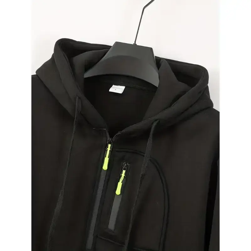 Men’s Half Zip Pullover Hoodie ✨ Category: Men’s Half-Zip Hoodie 🌟 This hoodie features a half-zip neckline and a vertical chest zip detail for adjustable comfort. The drawstring hood offers added coverage and warmth. It has a regular/relaxed fit, perfect for layering and movement. The minimal solid look with contrast zipper pulls gives a modern tech-sport vibe. Design and Pockets