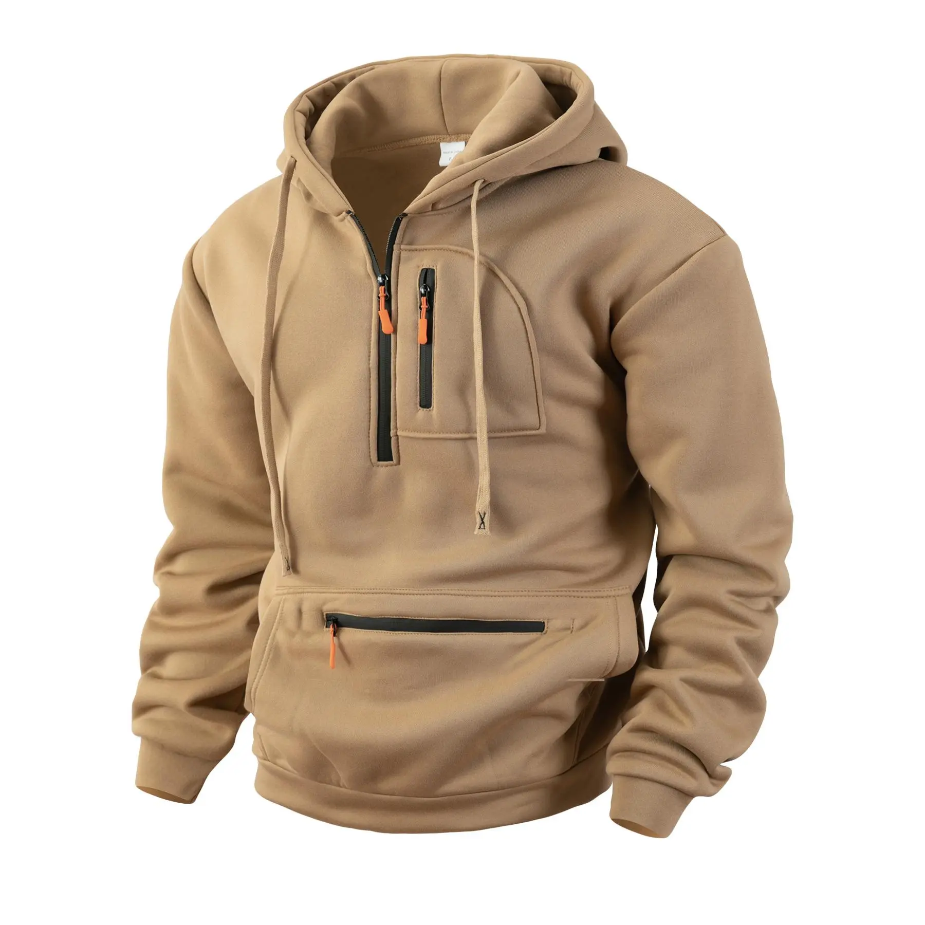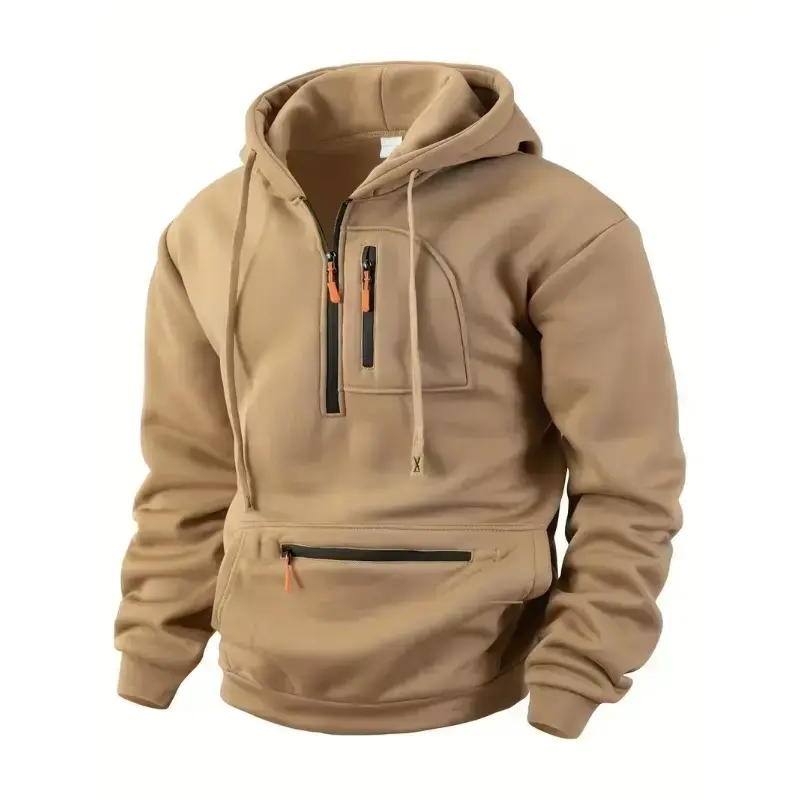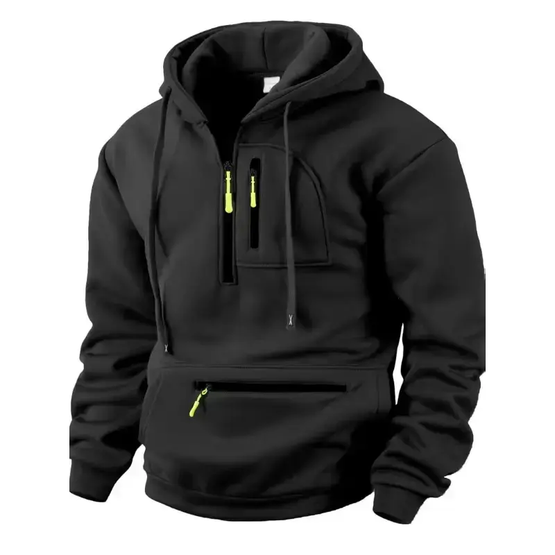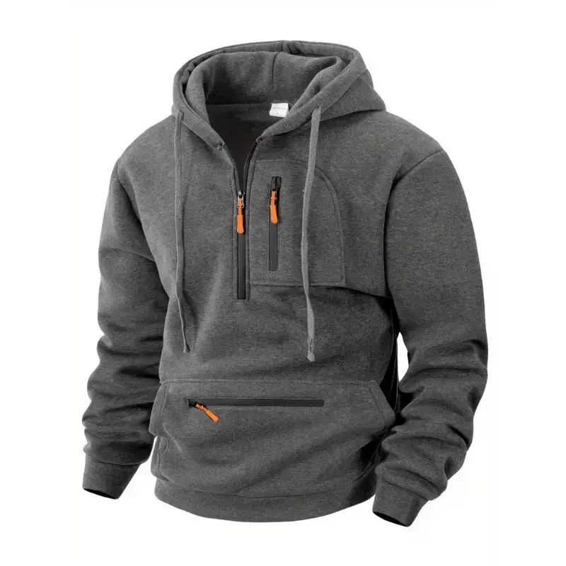 Men's Half Zip Pullover Hoodie with Drawstring Hood, Zipper Pockets, Regular Fit, Casual Streetwear, Soft & Warm Fabric