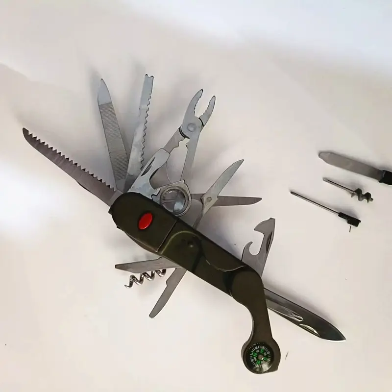 ✨ 17-in-1 Tool Set: This compact knife includes a main blade, saw, can opener, bottle opener, wire stripper, ruler, and screwdriver set. Perfect for camping, fishing, and DIY projects. No more bulky tools—everything you need in one pocket-sized tool.