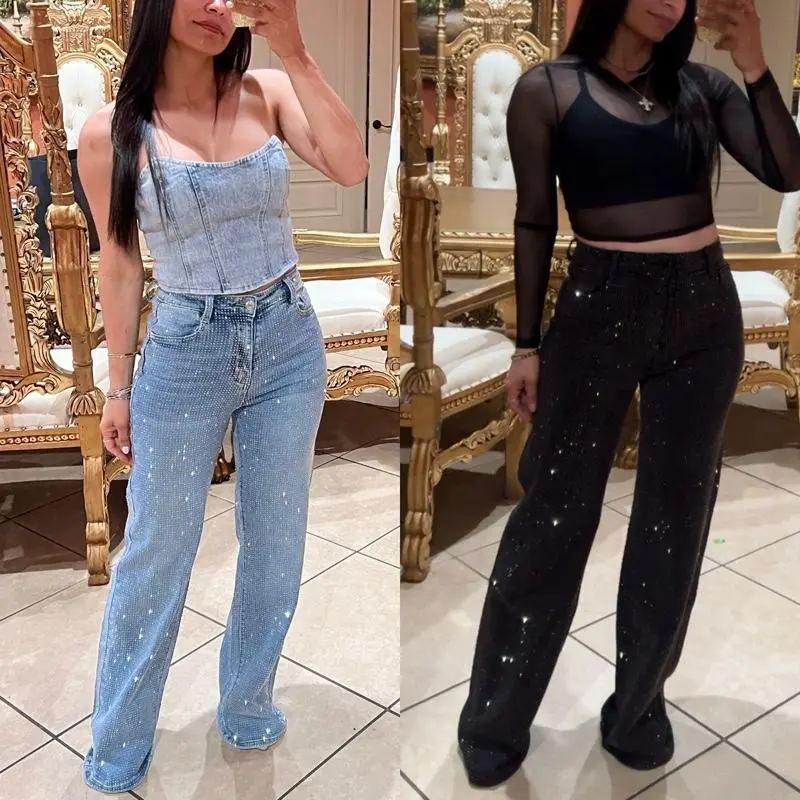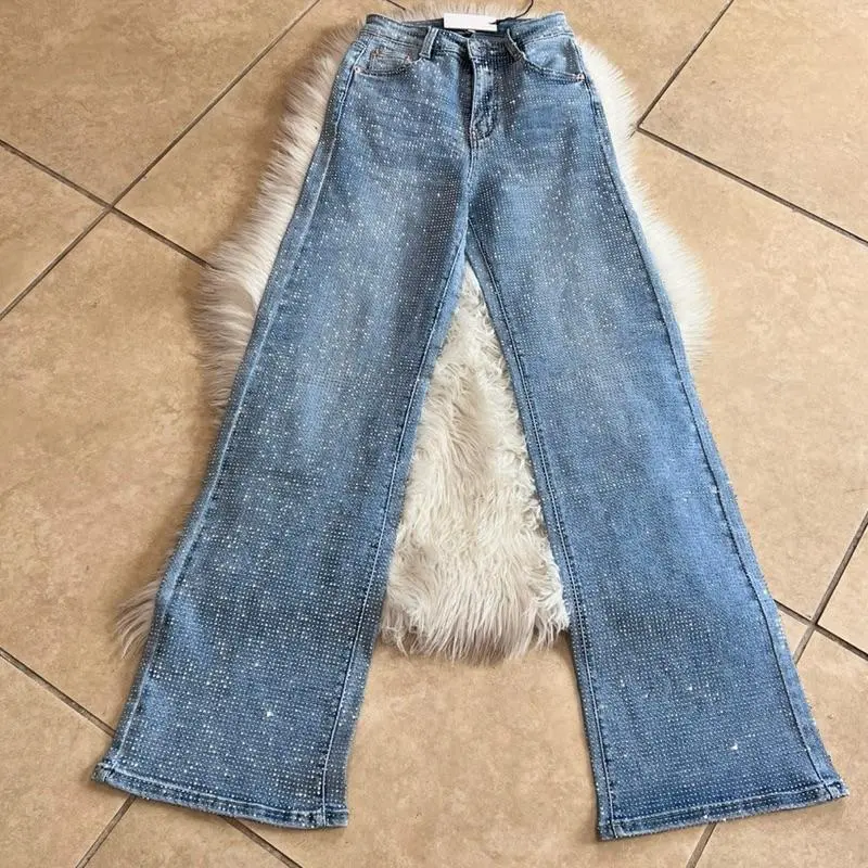 Discover the perfect blend of comfort and style with our Anabel Rhinestone Wide Leg Jeans. Crafted from a high-quality blend of 65% cotton, 32% polyester, and 3% spandex, these jeans offer a soft and stretchy fit that moves with you. * Stretch Denim: Designed for a comfortable fit, these jeans allow for ease of movement. * Wide Leg Design: The wide leg style provides a relaxed look, perfect for casual outings. * Embellished: Enhance the overall aesthetic with added detail and a unique touch. * High Rise: Offers a flattering fit that accentuates your waist. Elevate your wardrobe with these versatile jeans, perfect for any occasion.