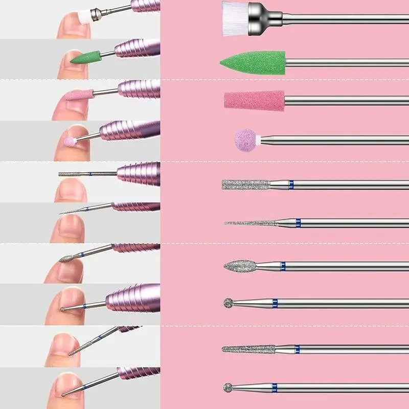 10pcs Tungsten Carbide Nail Drill Bits Set, Professional Nail File Bits for Nail Drill Machine, Cuticle Remover & Nail Polishing Tool
