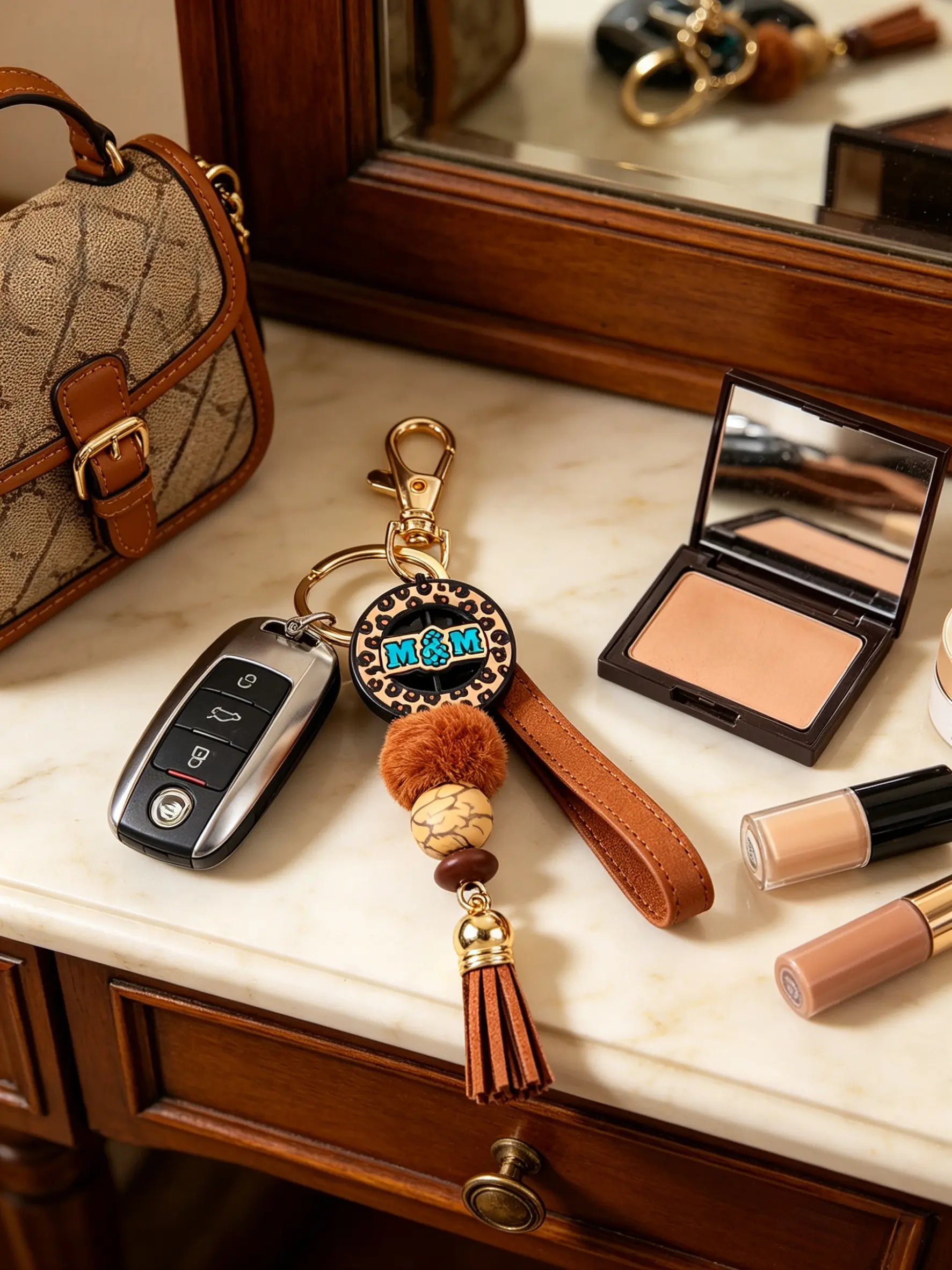 【Unique Boho Design】: Features a bohemian aesthetic with leopard print and tassels, adding a distinctive touch to any keychain collection.