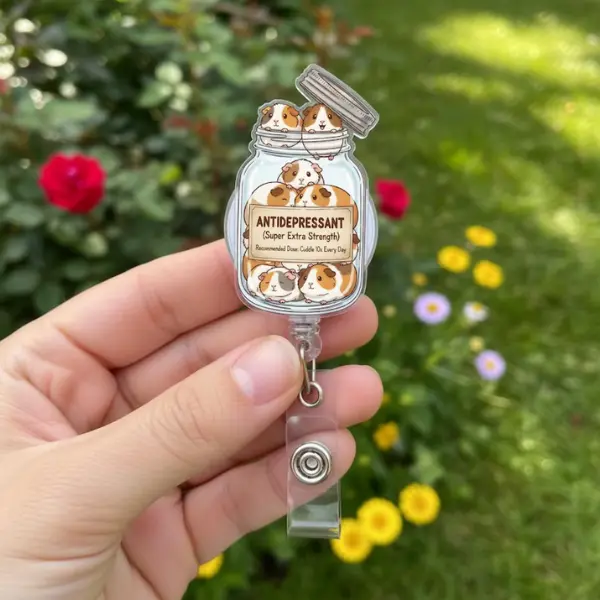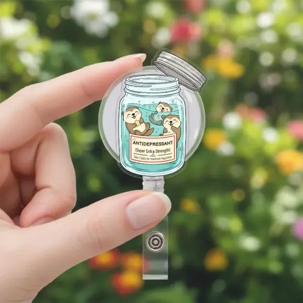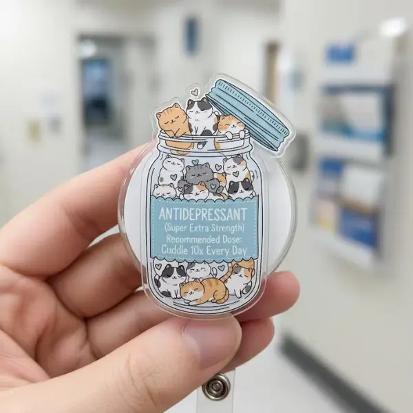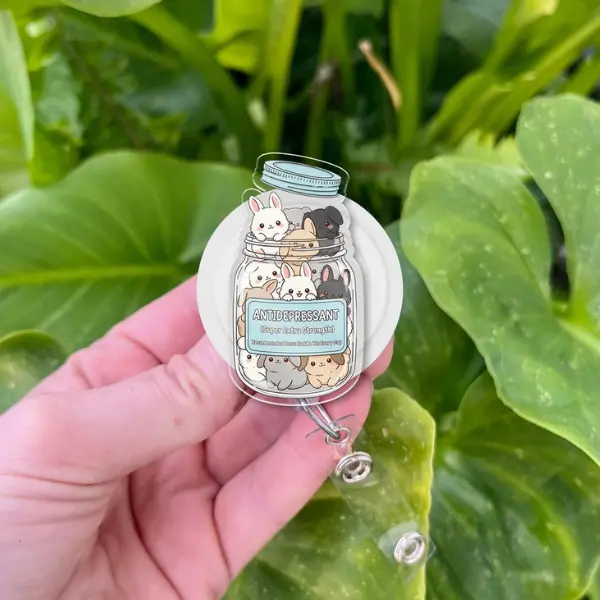Animal Acrylic Badge Reel, Anti-depressanttt Jar Badge Reel, Retractable ID Clip, Nurse Badge Reels