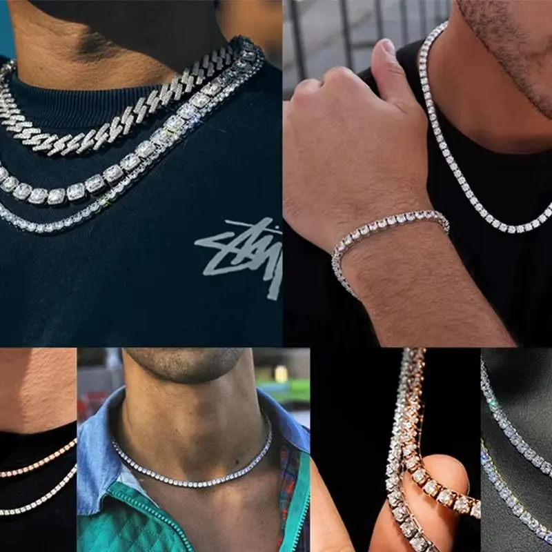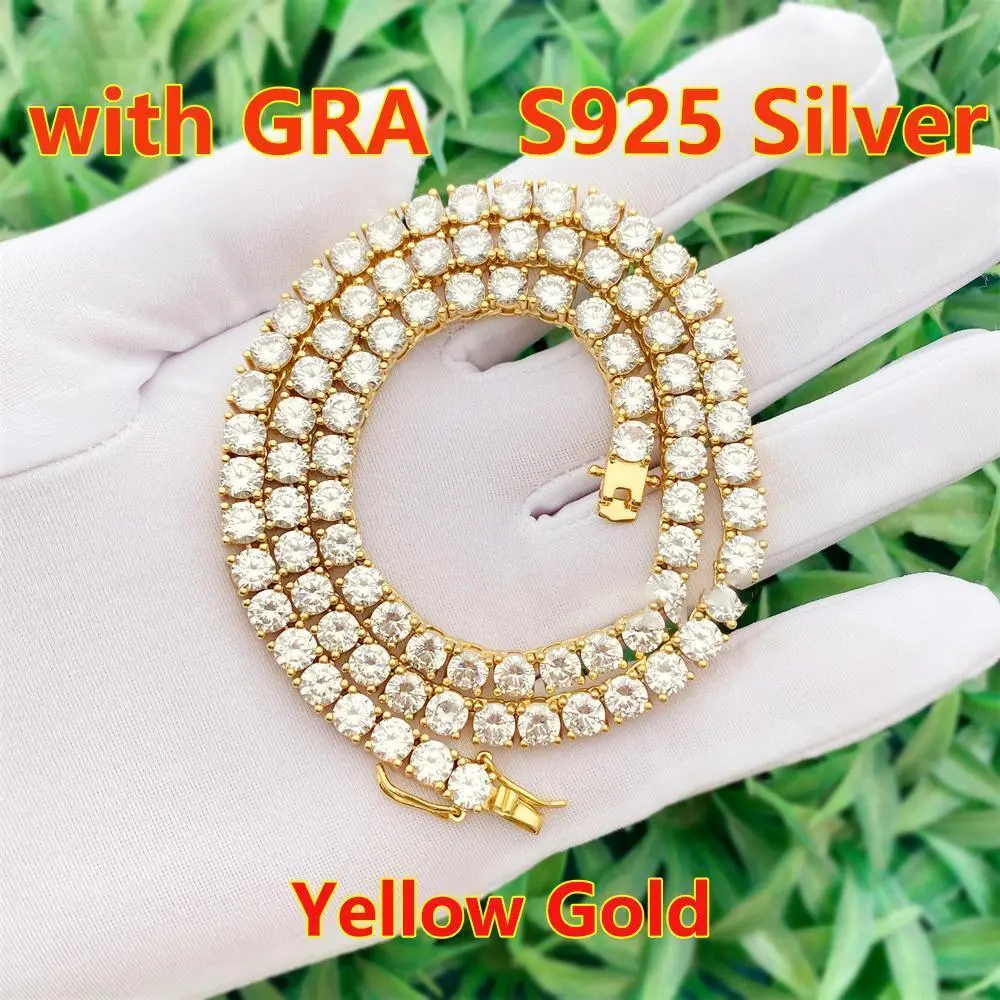 Tennis Hip Hop Necklace Moisssanite 18K Gold Plated 925 Sterling Silver Jewelry UnisexMoissanite Tennis Chain For Women & Man