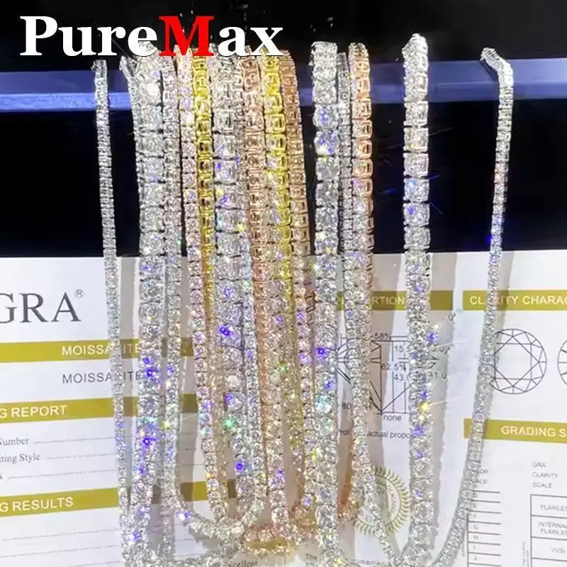 ESKEEM Moissanite Tennis Chain Necklace 925 Silver Iced Out VVS Pass Diamond Tester 2/3/4/5mm Tennis Chain Fine Jewelry