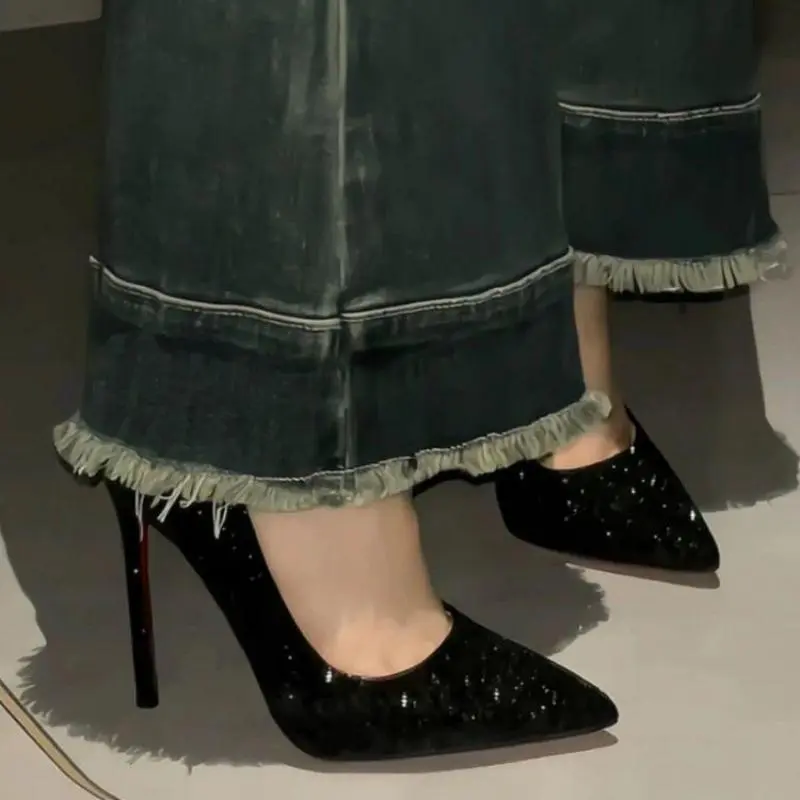 2025 Spring and Autumn New Black and Red Heeled Stilettos with Elegant Comfort Design and Pointed Style for Women Girl Fashion Walking Shoes Footwear
