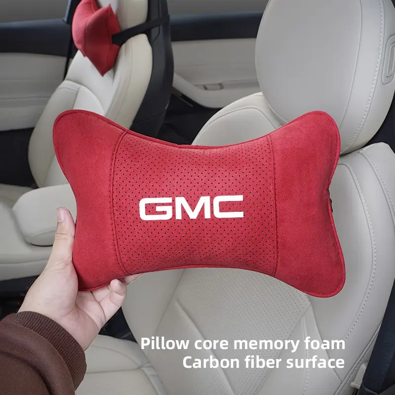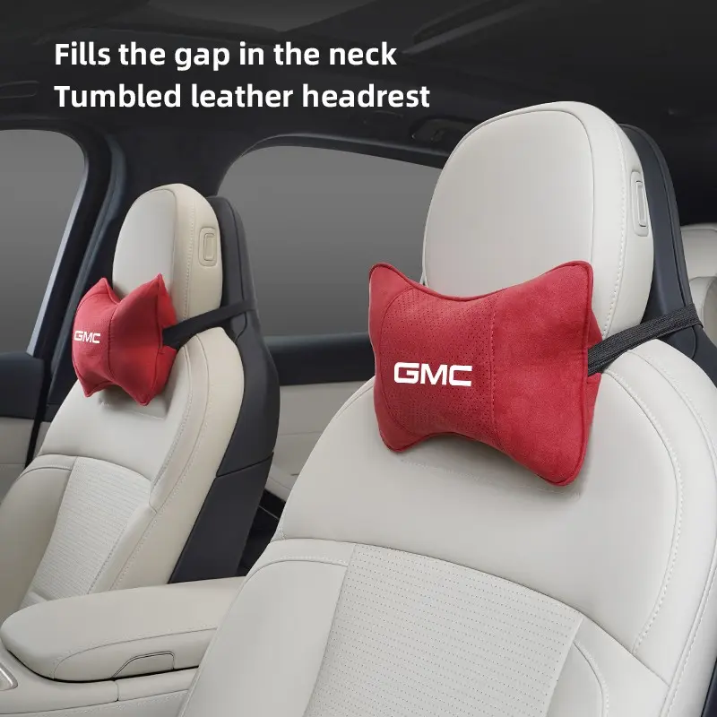 Car Suede Headrest Neck Support Auto Seat Accessories For GMC Terrain Sierra Canyon Yukon Acadia Savana Denali AT4 Granite