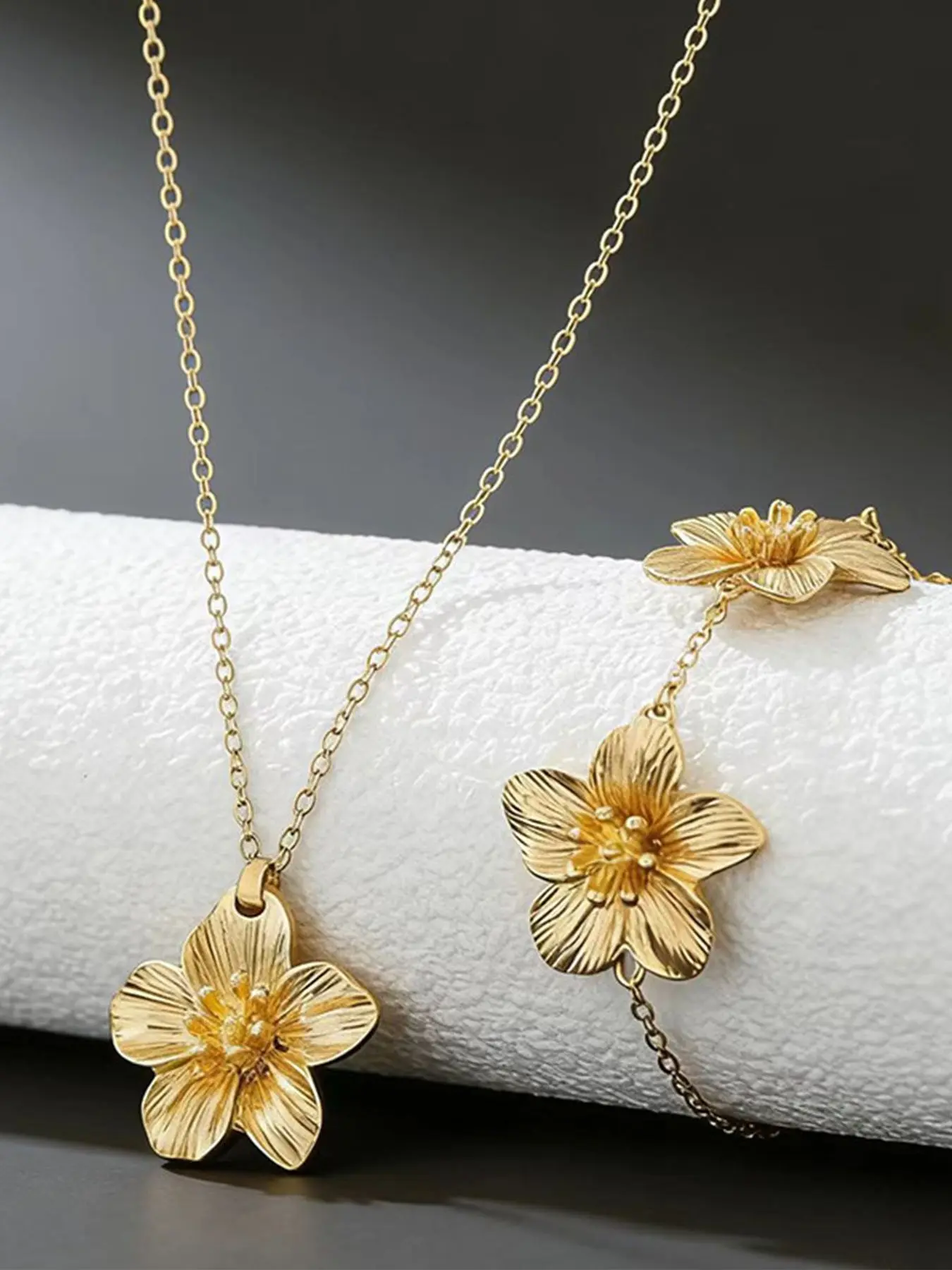 Luxury Floral Necklace Earrings Set, Unique Design Flower Jewelry Combo, Elegant Necklace and Earring Set for Women