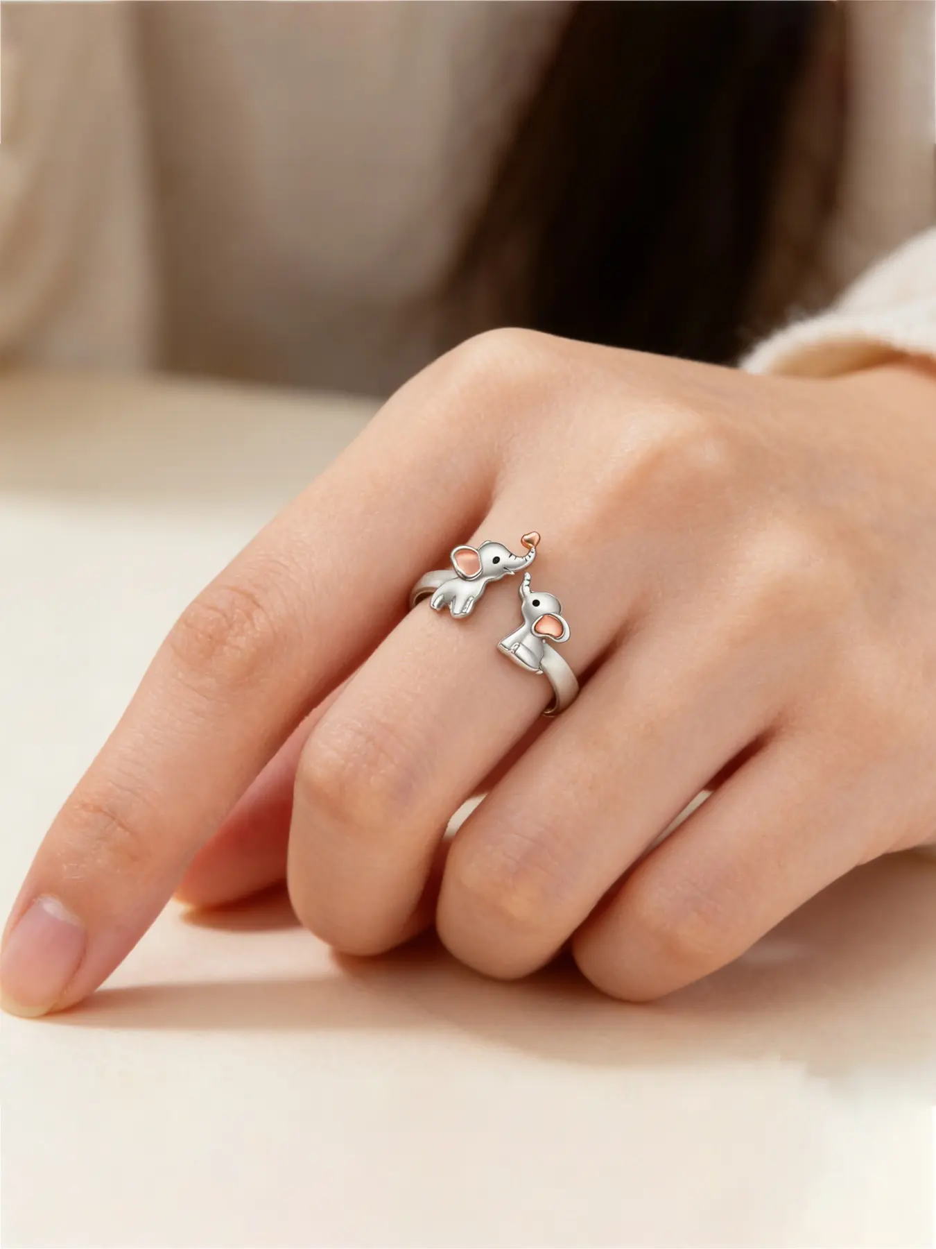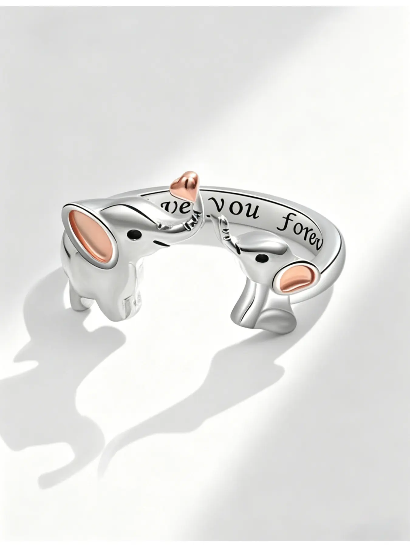 Adjustable Elephant Ring for Mother and Daughter, Heart Animal Jewelry, Perfect Mother's Day Gift, Symbol of Eternal Love