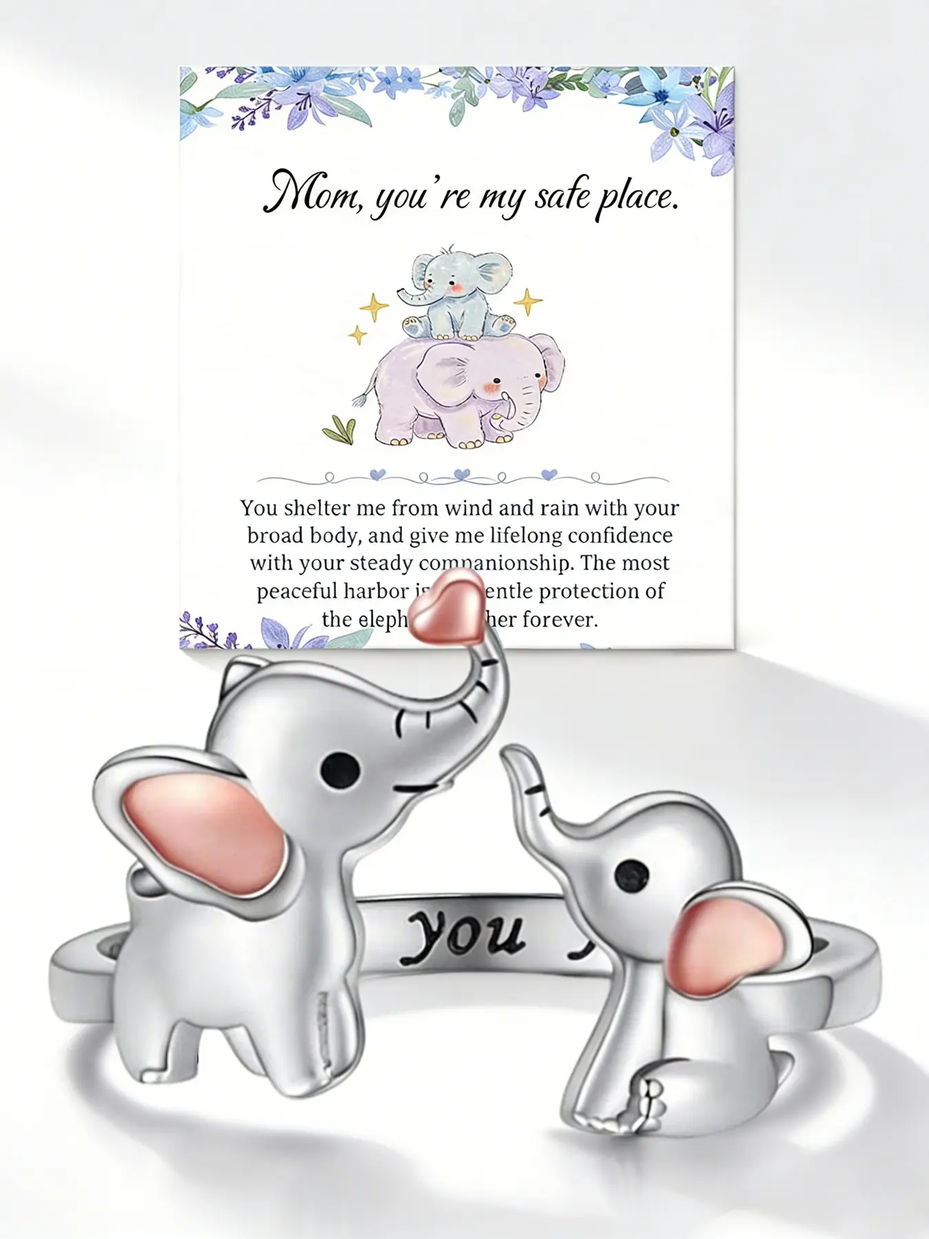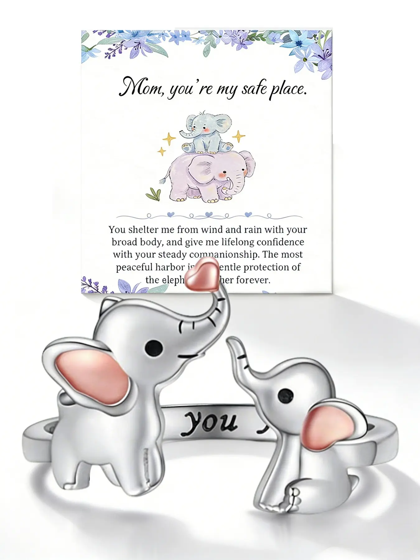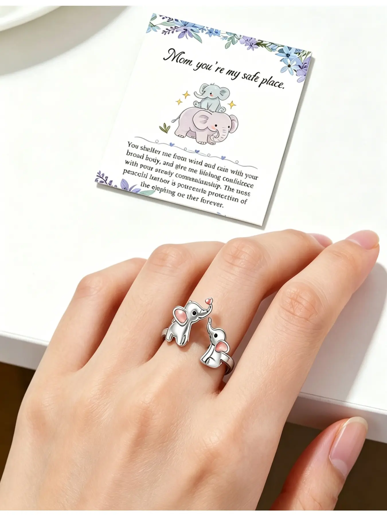 5. Adjustable Elephant Ring for Mother and Daughter, Heart Animal Jewelry, Perfect Mother's Day Gift, Symbol of Eternal Love