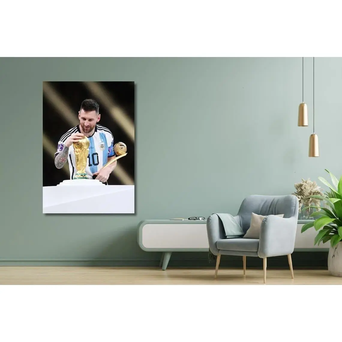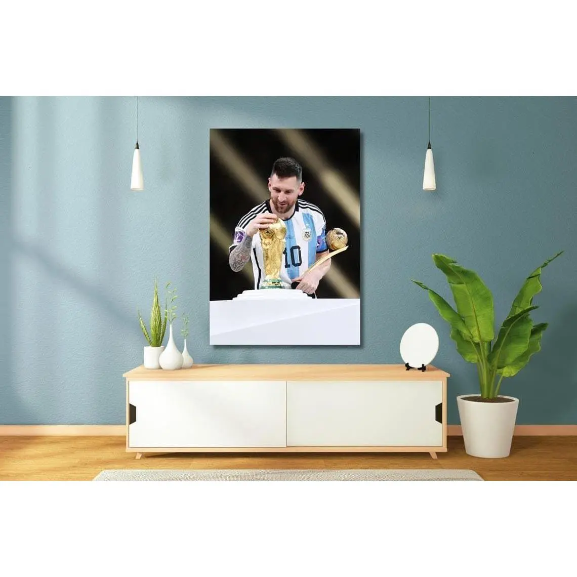 Football Legend Lionel Messi Poster,Messi Kisses The World Cup,The World's Best Footballer Lionel Messi Poster,World Cup Champions Argentina