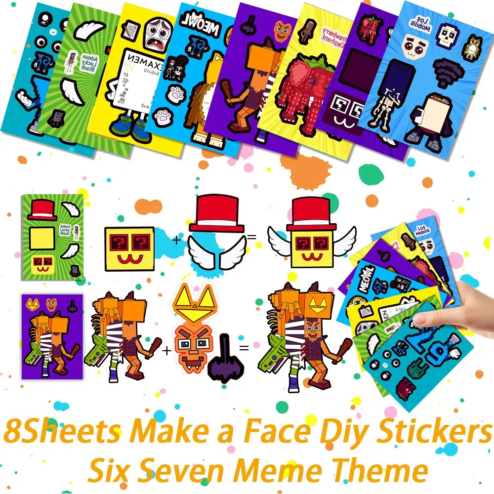 Hot Funny Abstract Six Seven Meme Theme Birthday Decorations ,Brainrot Meme &67 Themed party supplies Set Includes Banner, Cake Topper, Cupcake Toppers, Ballons,8 Sheets Make a Face Diy Sticker,Suitable for cartoon-themed birthday party events